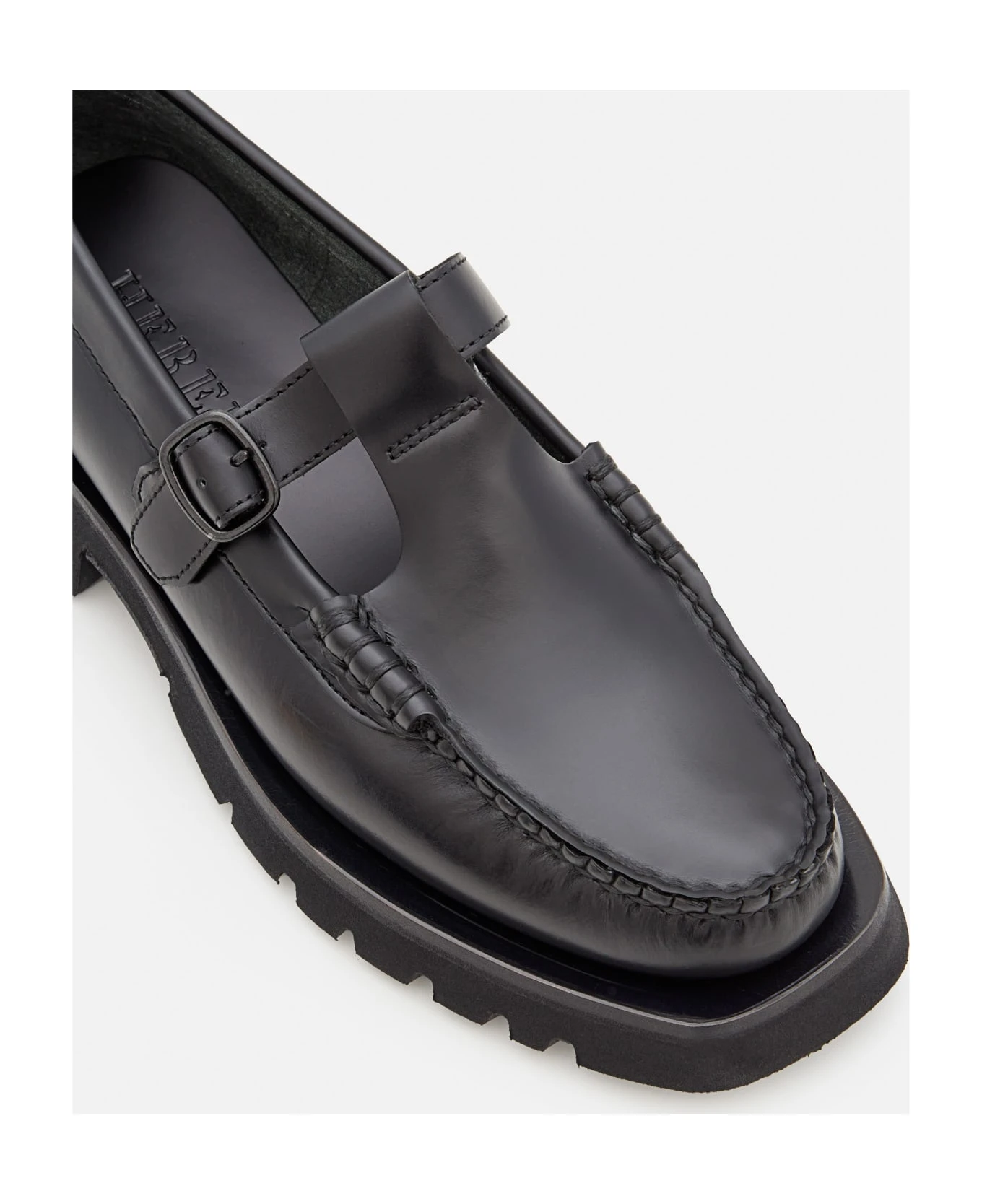 Leather upper. Rubber sole. Buckle closure on the upper. Color: black.