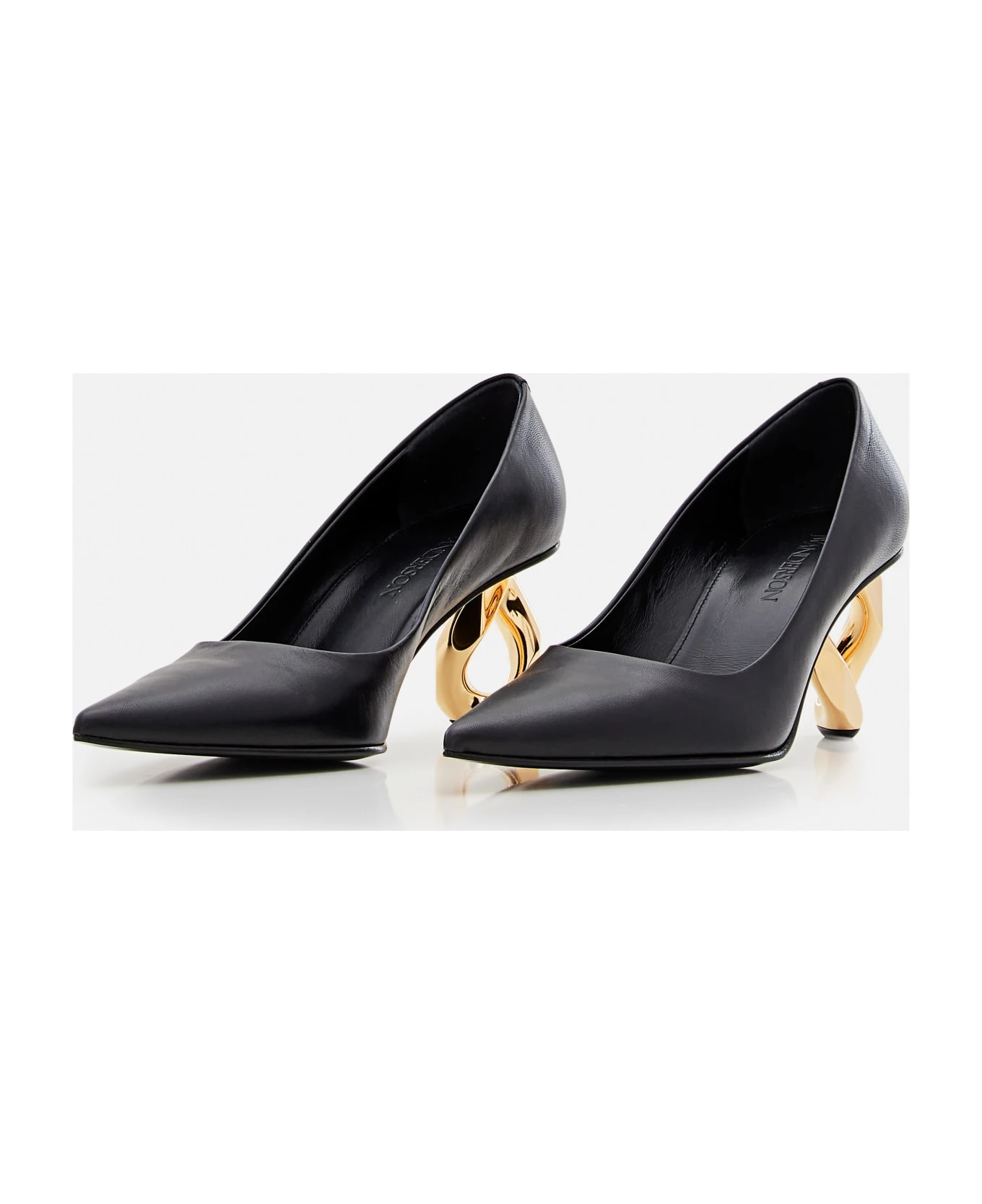 Pointed toe. Leather upper. Leather sole. Golden-tone pleated heel. Color: black.