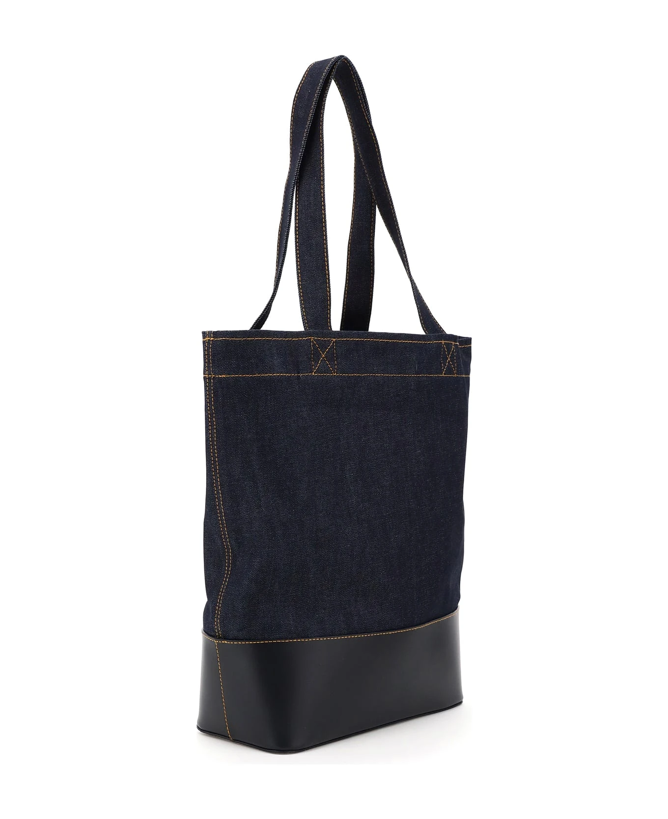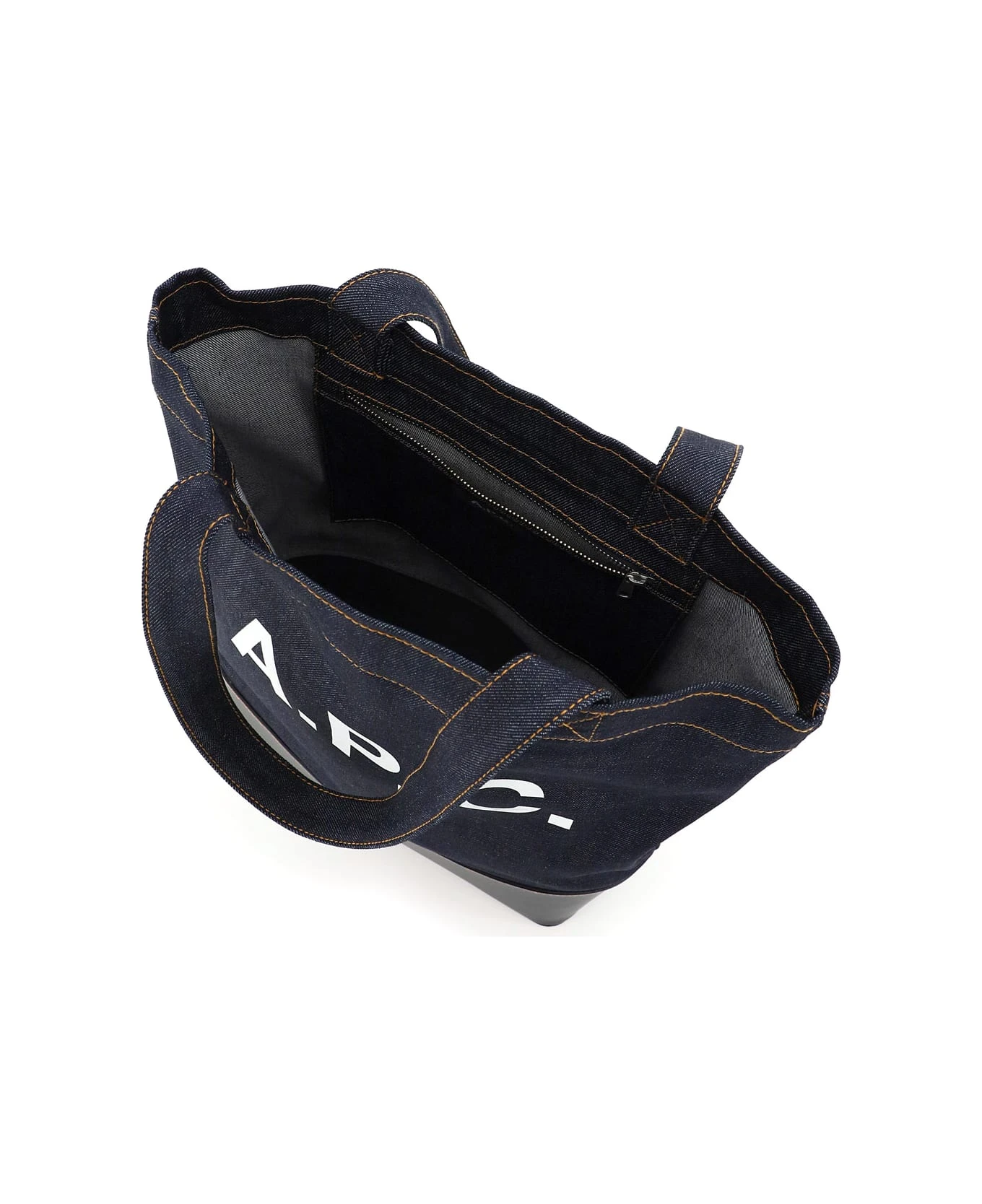 A. P. C. Axel tote bag in cotton denim, featuring long handles, rubberized logo print on the front, leather base, contrasting stitching. Unlined interior, one inner zip pocket.