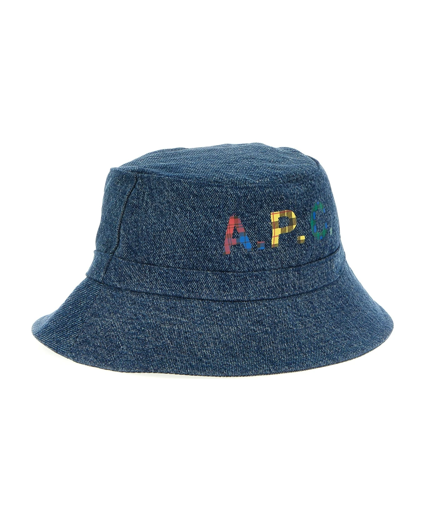 Denim bucket hat with logo print.