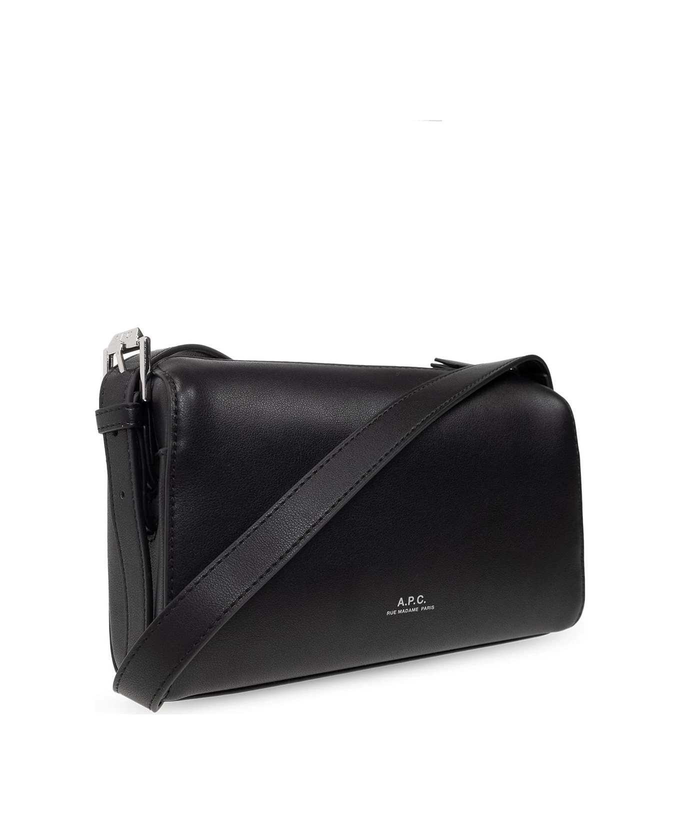 Black ‘Nino’ shoulder bag from A. P. C. Crafted from faux leather, this design secures with a zip and showcases a printed silver-tone logo on the front. It is complete with a long, adjustable shoulder strap, one back pocket with a magnetic snap, silver-tone