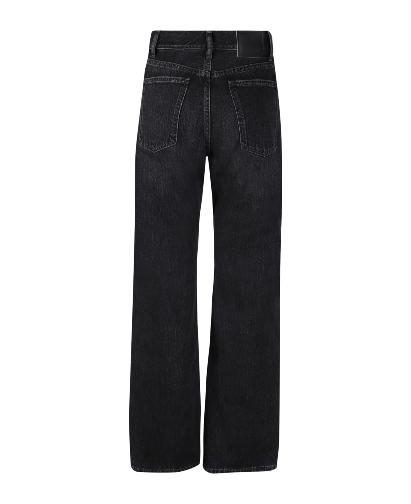 High neck. Belt loops. Classic five pockets. Front button fastening. Color: black