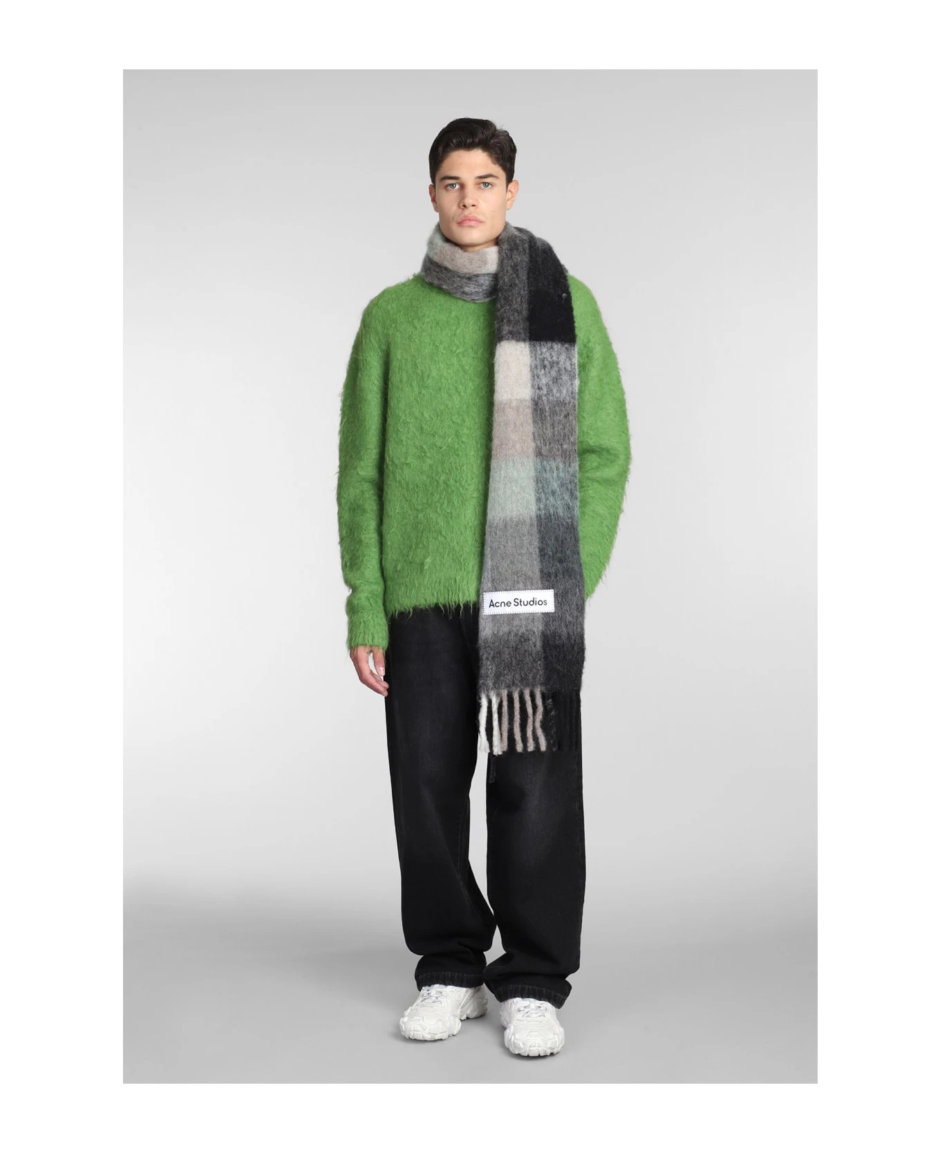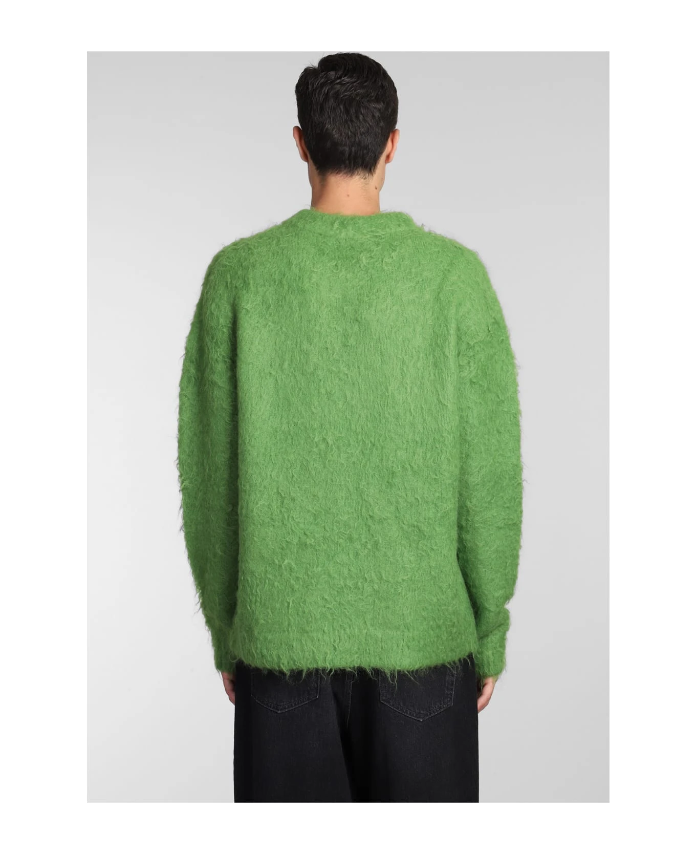 Knitwear in green wool, round neck, long sleeves, ribbed cuffs and bottom, 48% nylon, 15% mohair, 35% wool, Made in China, Model is 183 cm and wears size L