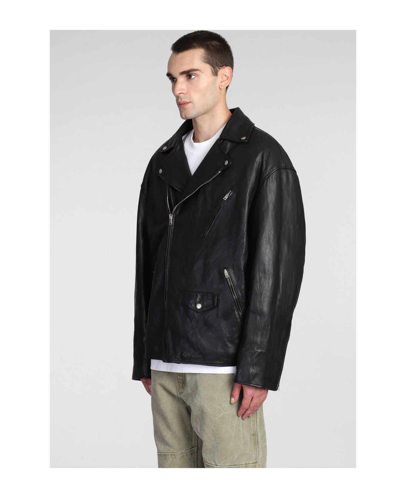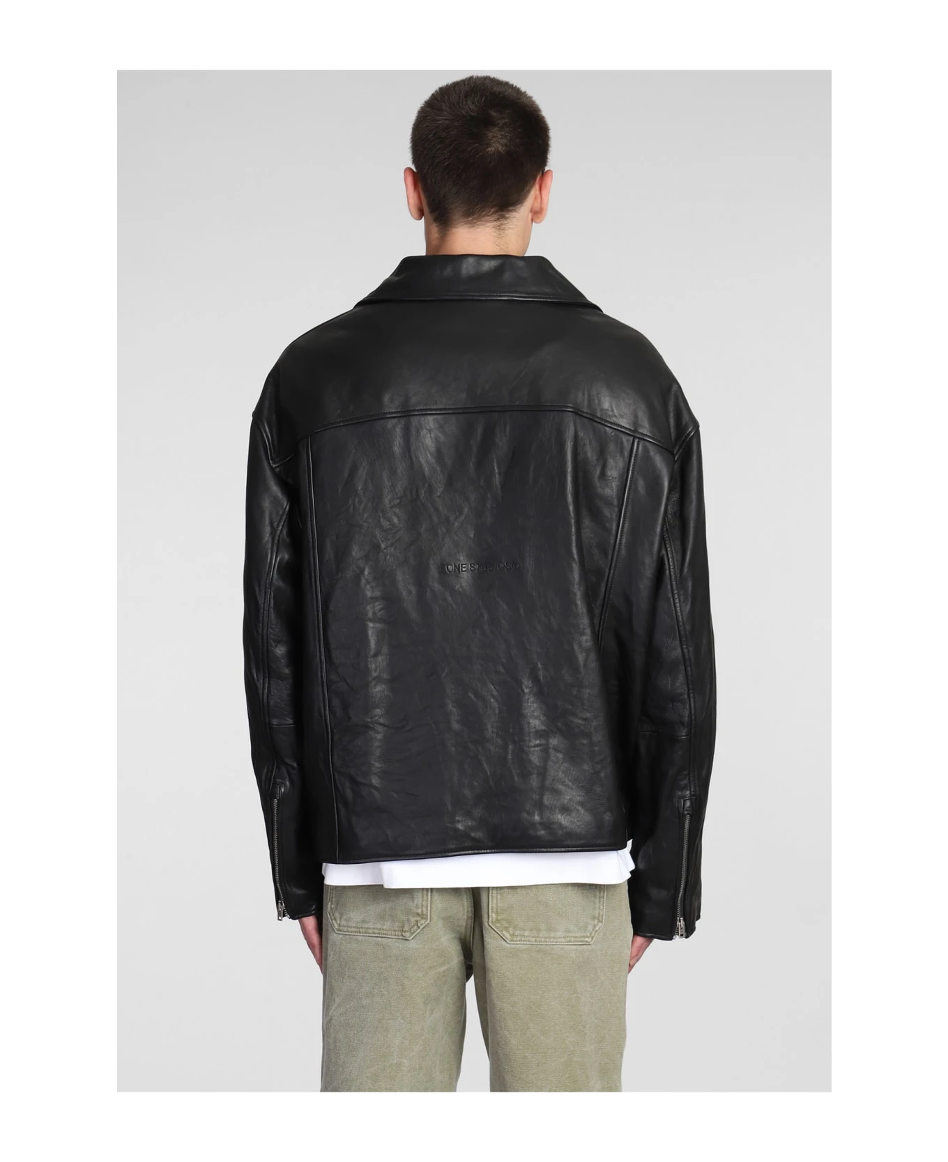 Leather jacket in black leather, revers, zip clousure, long sleeves, zip detail, pockets, 100% leather, Made in Turkey, Model is 183 cm and wears 48