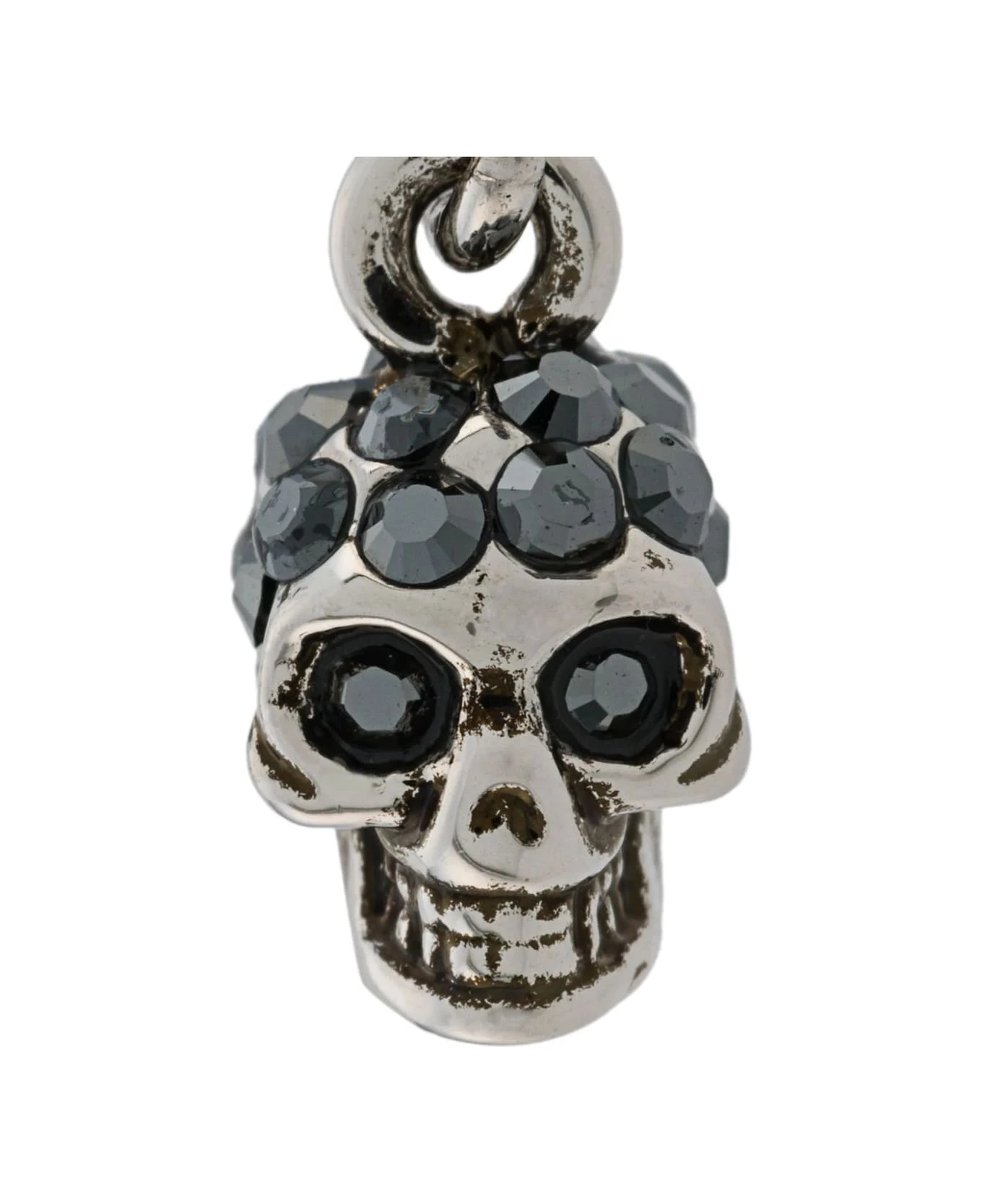 Alexander McQueen hoop earrings for women made of antique silver-colored brass with crystals and Skull charm.