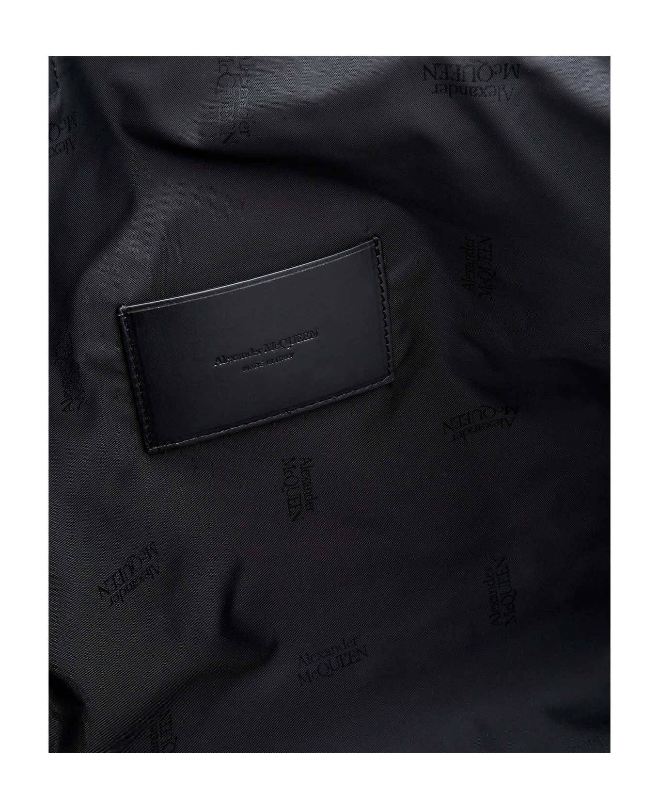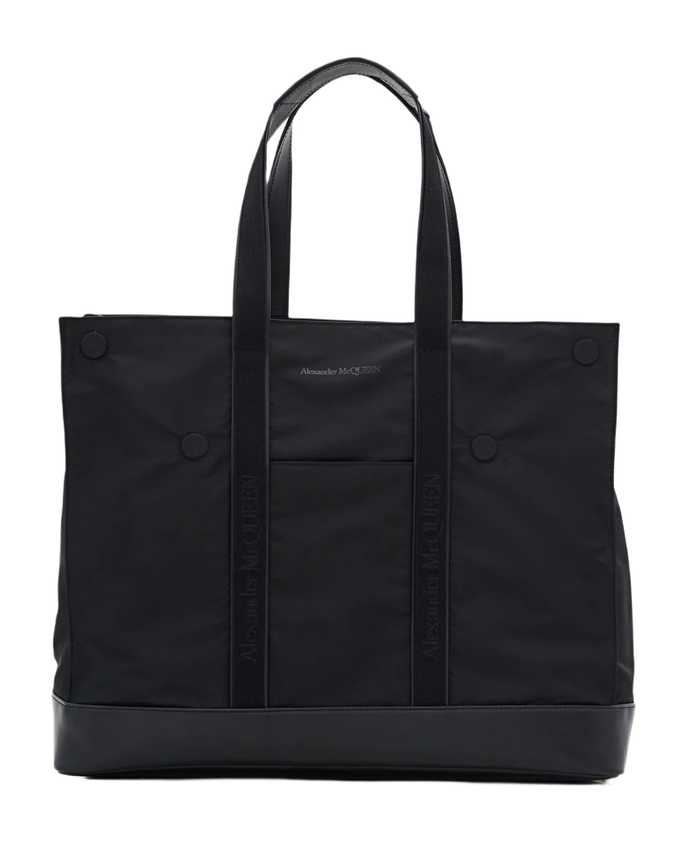 Zip closure. Double leather handle. Detachable leather strap. Logo detail. Color: black.