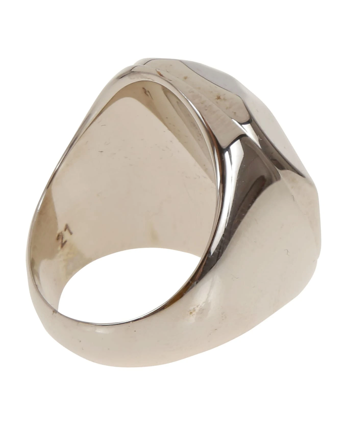 Alexander McQueen`s faceted stone ring showcases a polished and faceted finish in silver-tone and brass, with its engraved logo adding the perfect touch to the design.