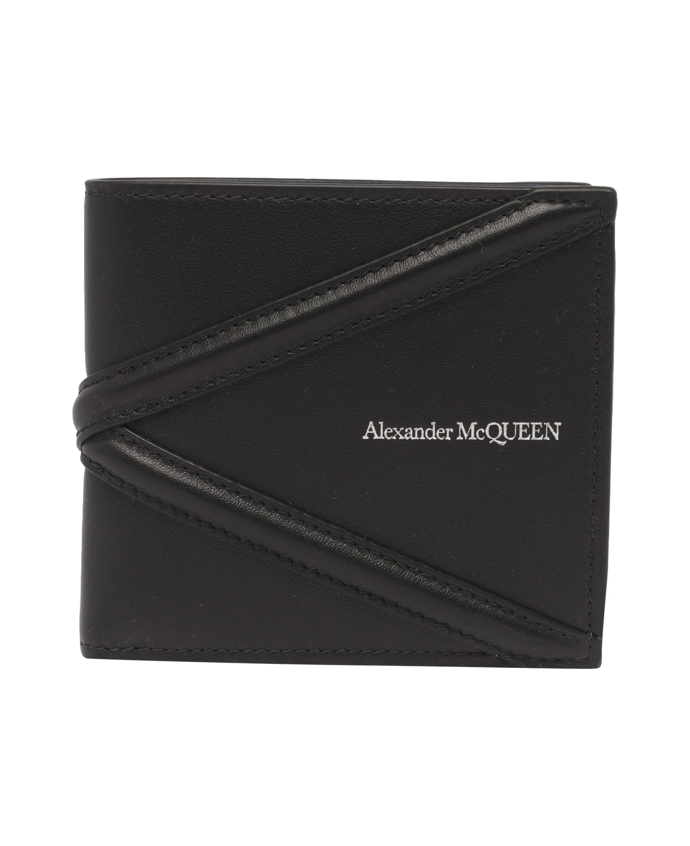 Alexander Mcqueen black Harness wallet, frontal logo, 2 compartments for banknotes, 8 slots