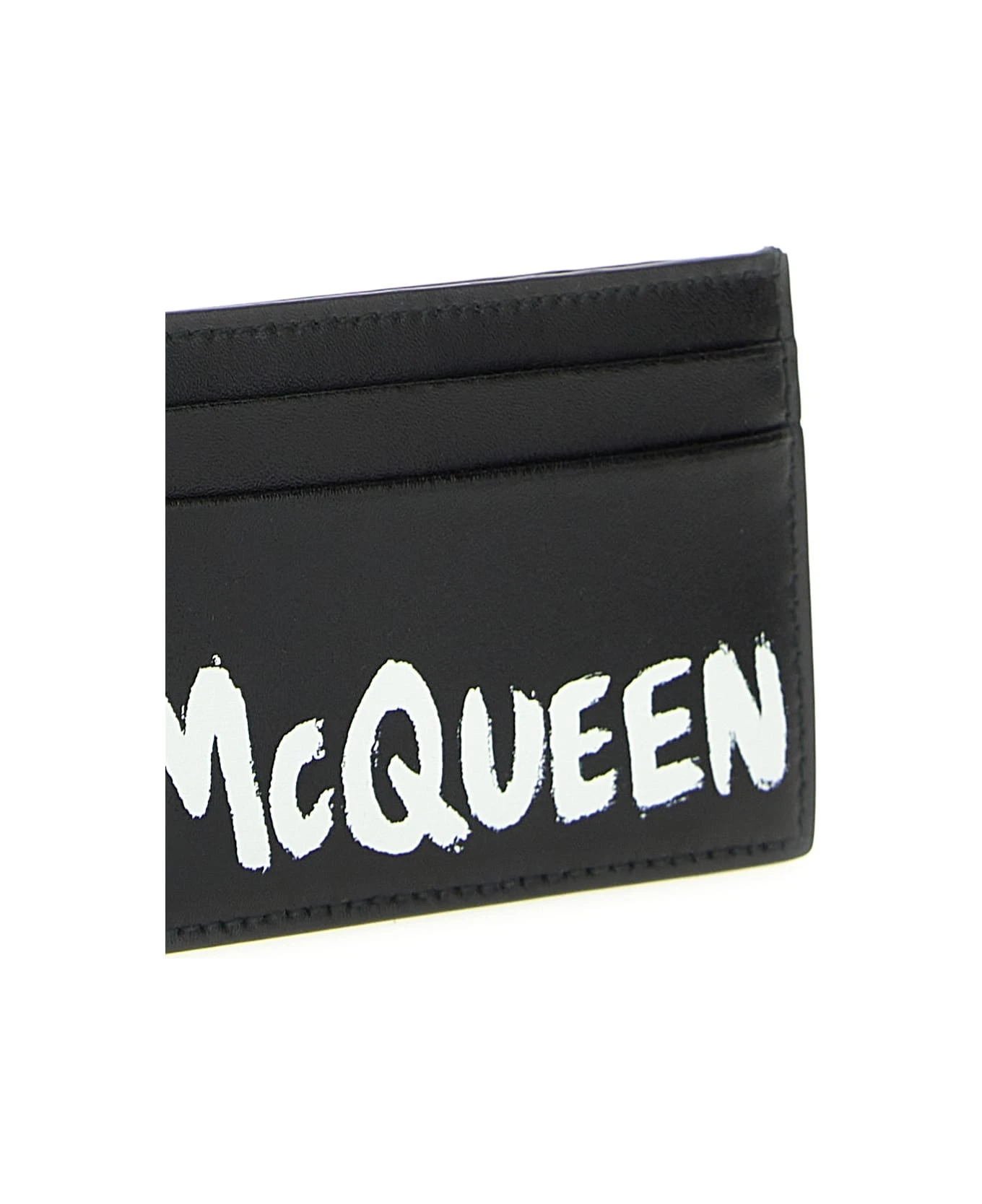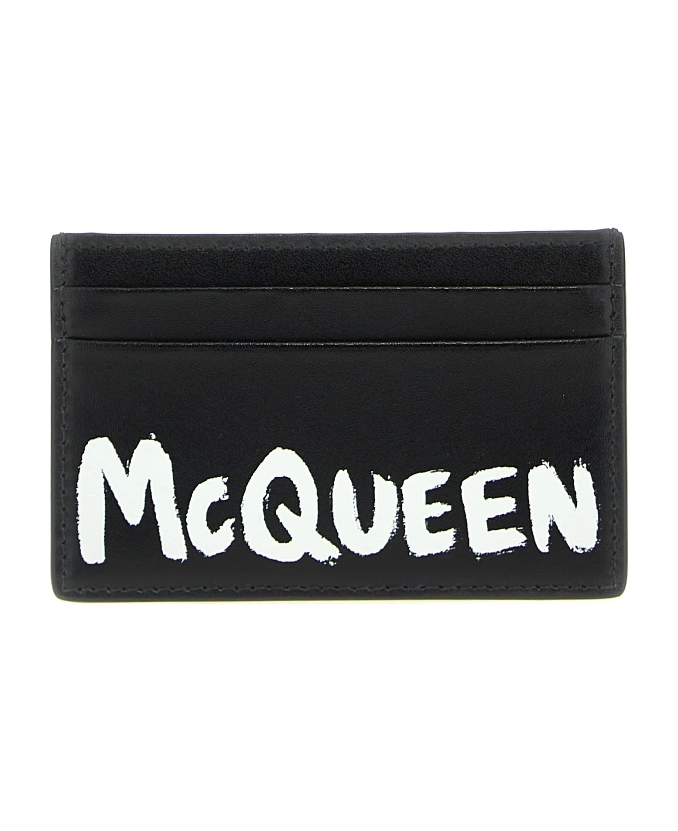Leather card holder with logo print.
