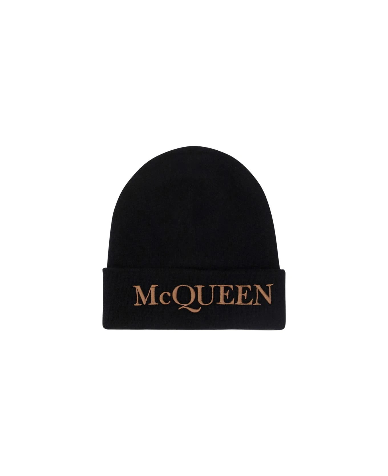 Cashmere mcq hat by alexander mcqueen brand signature embroidered in contrast on the front at the hem.