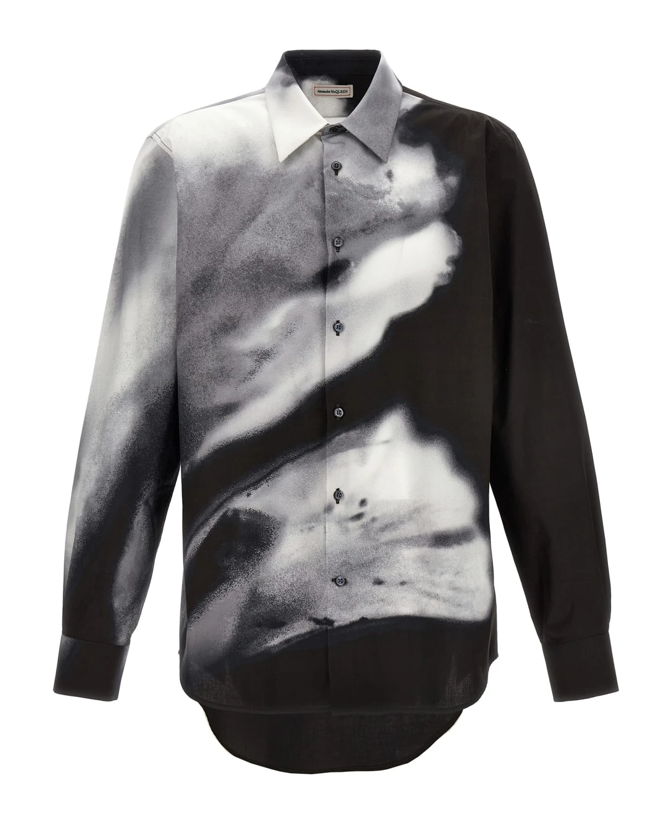 Cotton shirt with all-over print, a button closure, and long cuffed sleeves.