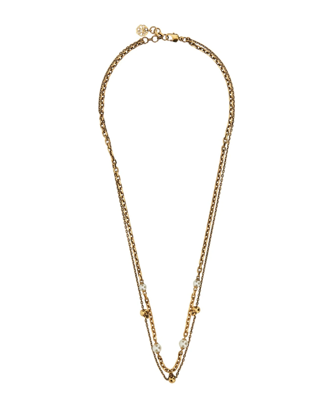 – Antiqued Gold Finish Double Chain Necklace- Metal Skull And White Swarowski Pearl Effect- Adjustable Clasp With Lobster Clasp And Logo Charm- Eco Brass Metal Accessories- Inside Necklace Length: 50 Cm- External Necklace Length: 53 Cm- 100% Brass- Made In Italy