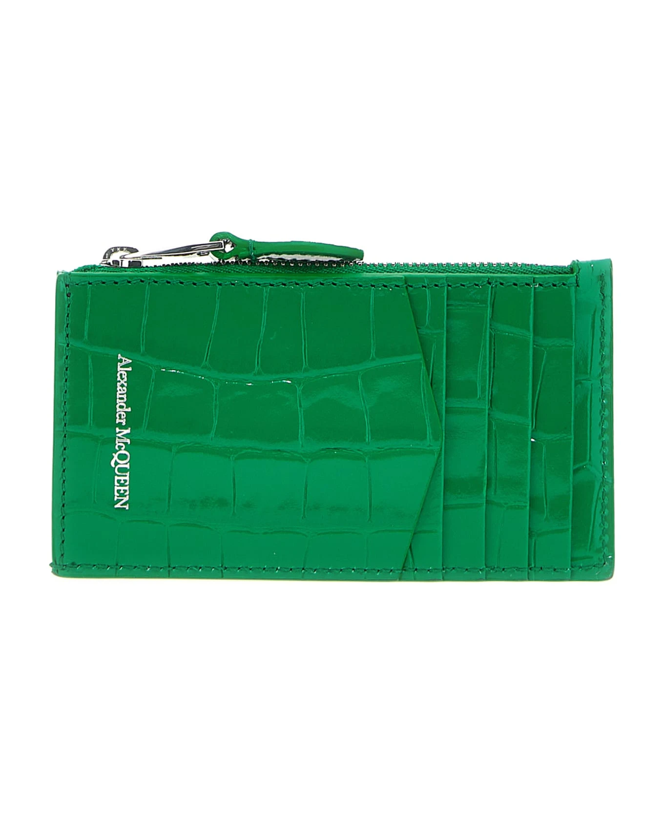 Coconut-print leather wallet with top zipper closure, Skull silver metal appliqué with crystals on the front.