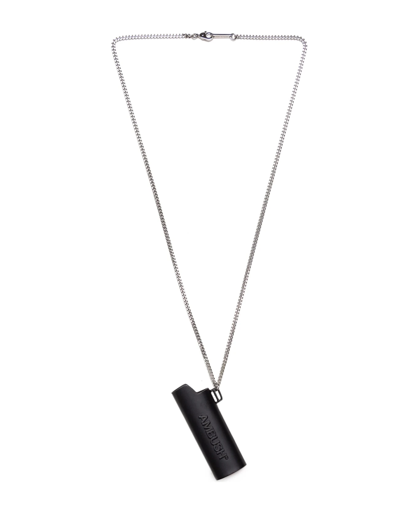 Lighter case necklace with embossed logo detailing. Crafted to perfectly fit a BIC lighter.