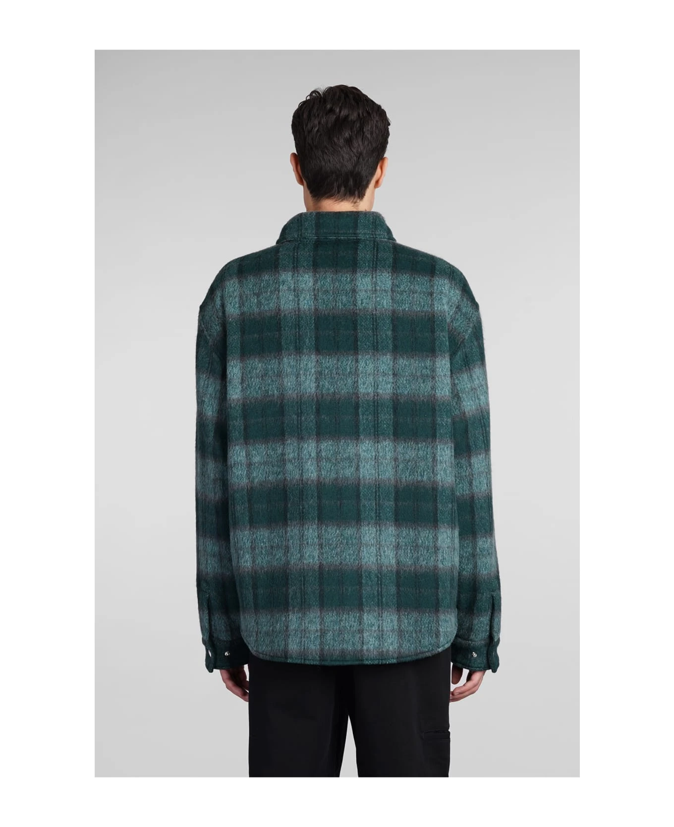 Casual jacket in green wool, classic collar, closure with pressure buttons, long sleeves, logo on chest, chest pockets, square pattern, buttons sleeves, 60% wool, 30%polyester, 4% acrylic, 3% rayon, 3% nylon, Made in Italy