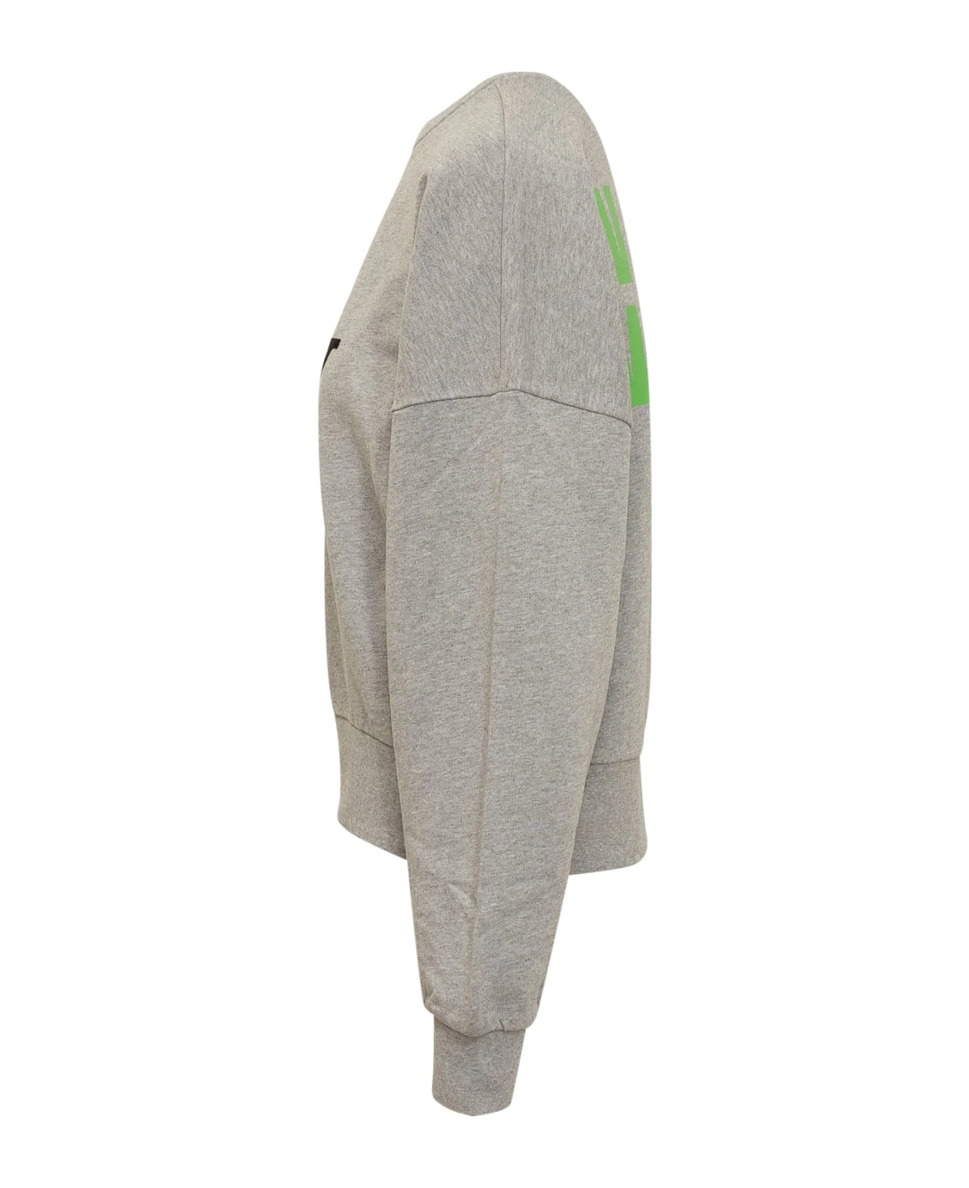 Grey long sleeve sweatshirt. Crew neck. Logo printed on the front and back. Ribbed collar, cuffs and bottom.