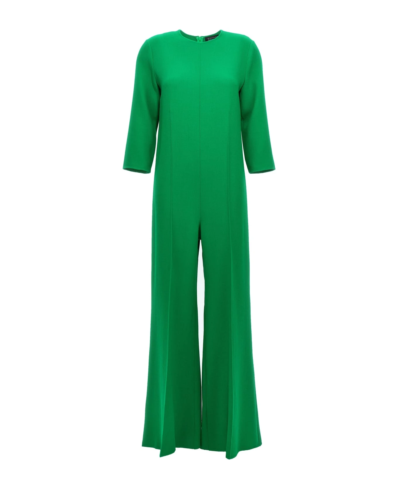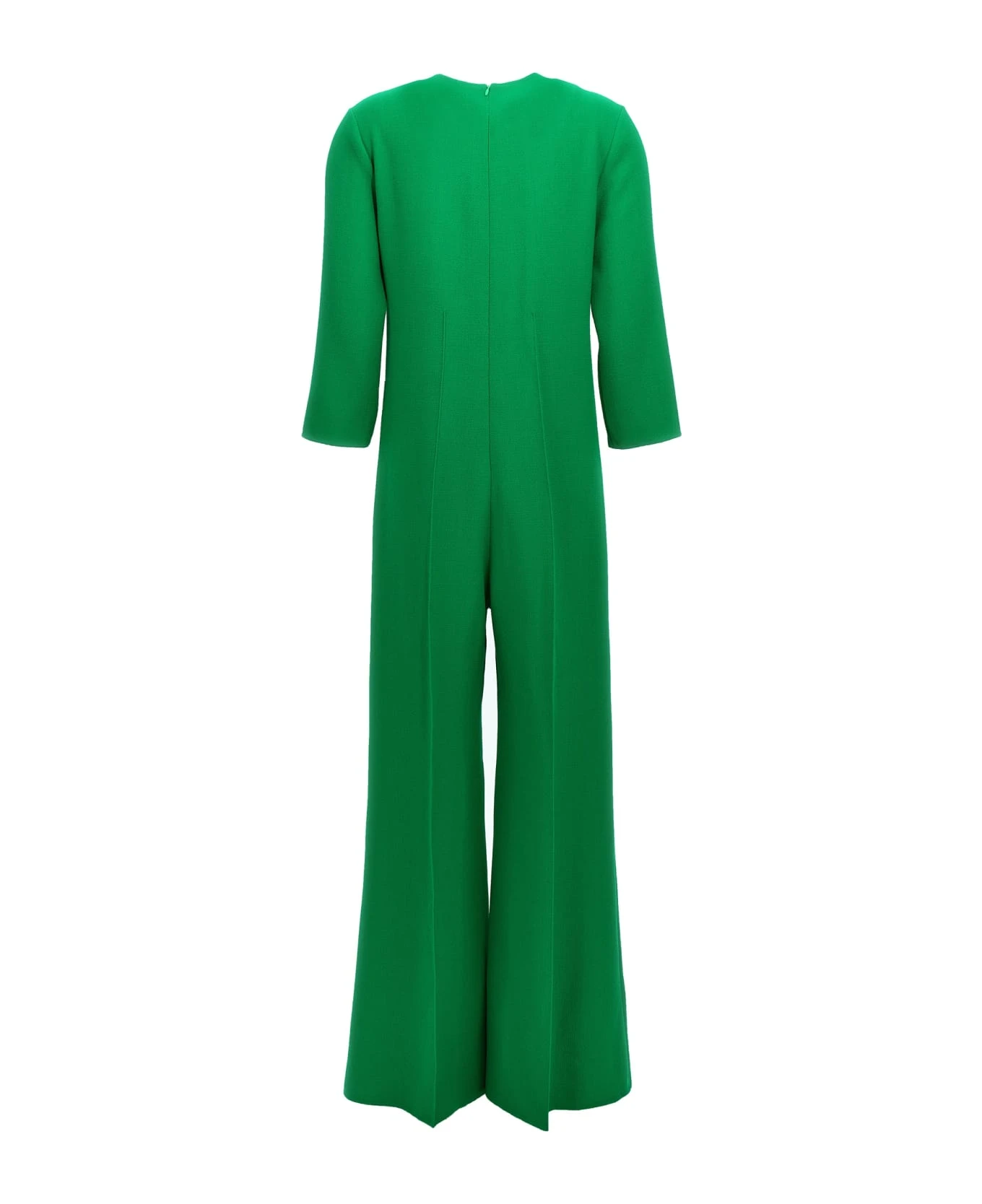 ‘Antonia’ wool jumpsuit with crew neck, long sleeves, back zip closure.