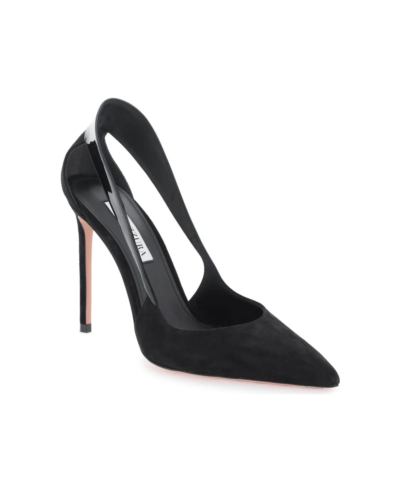 Suede ”Dangerous Liaisons’ 105 by Aquazzura with patent leather insets and cut-out details. Leather footbed and leather sole.