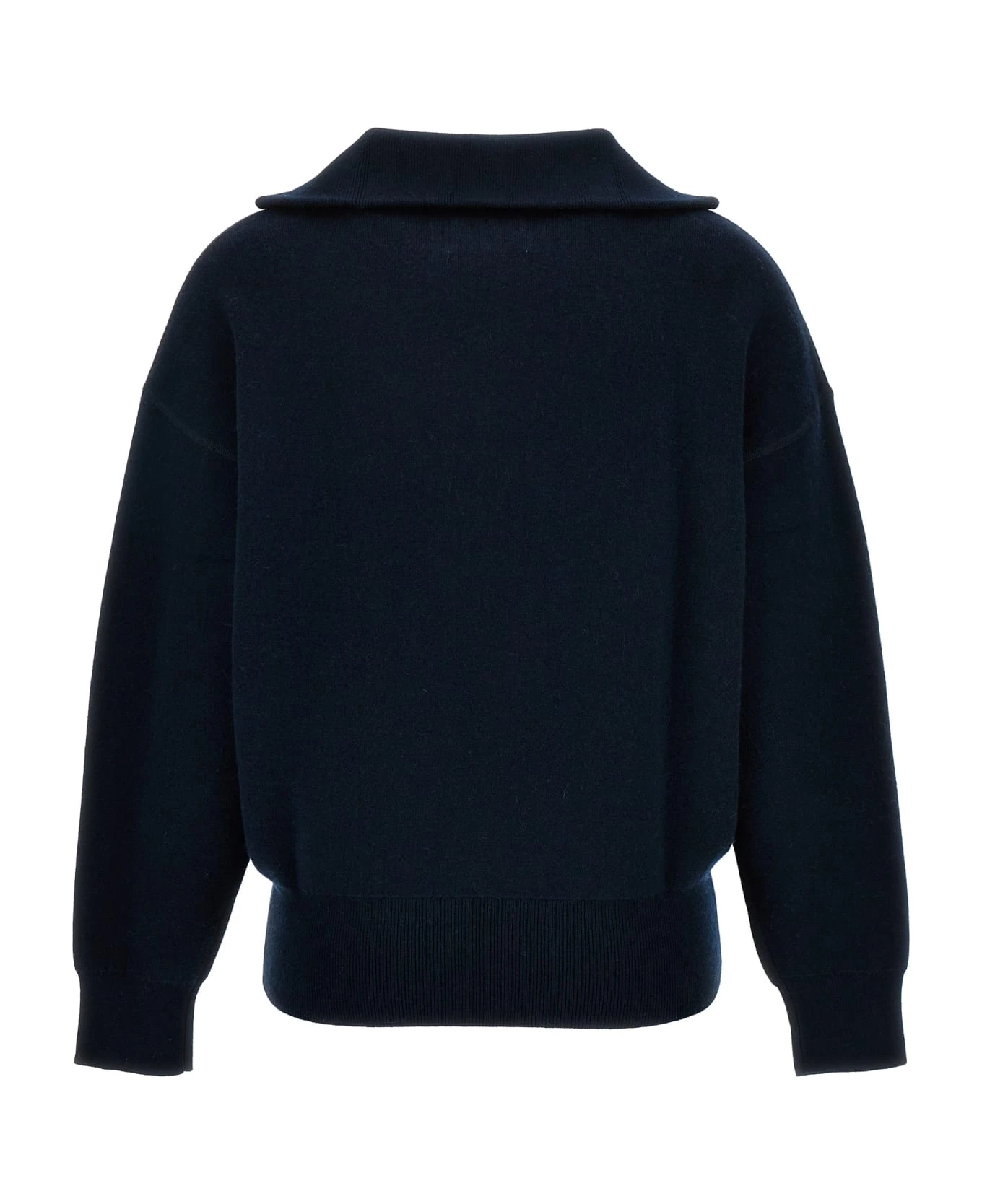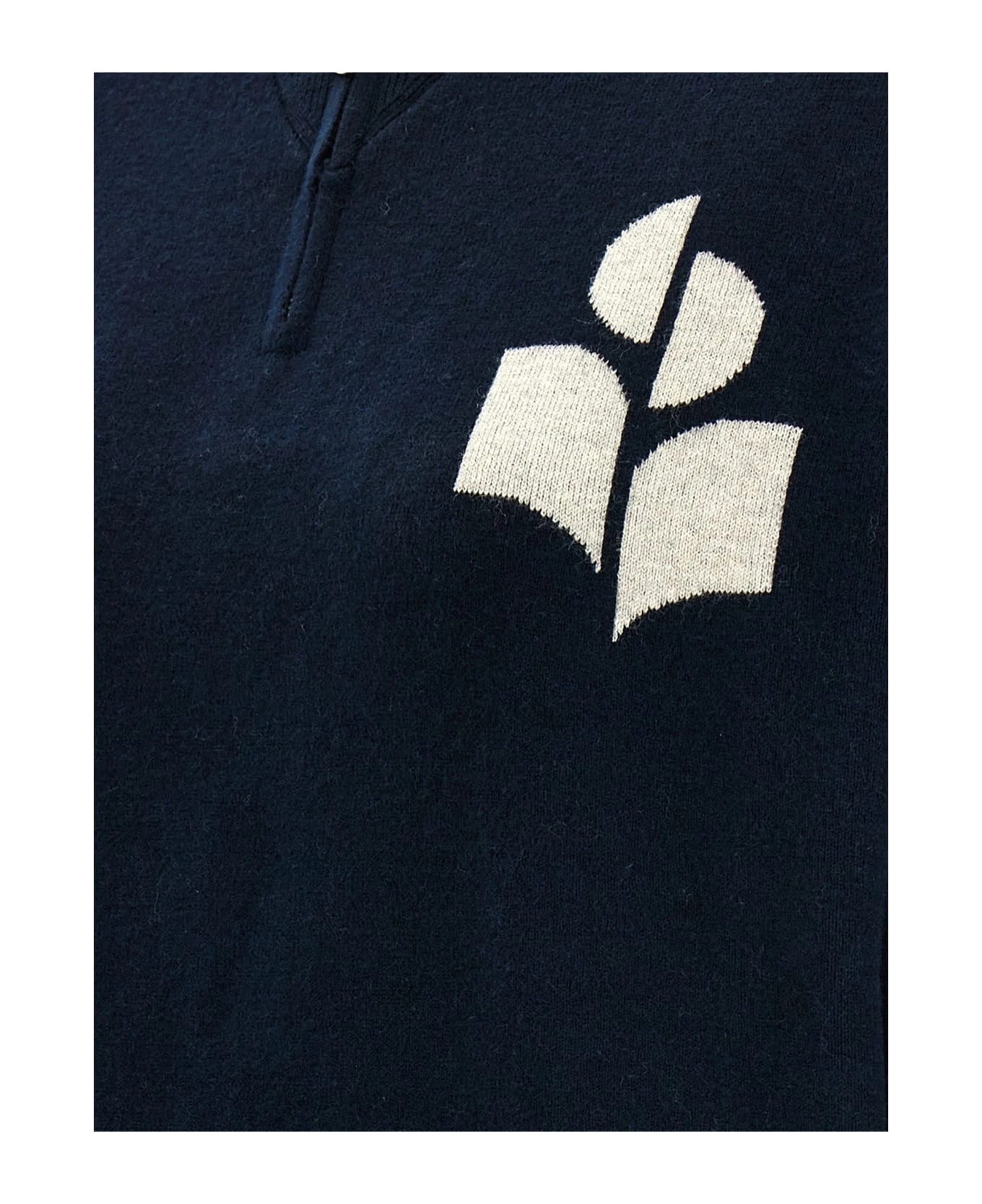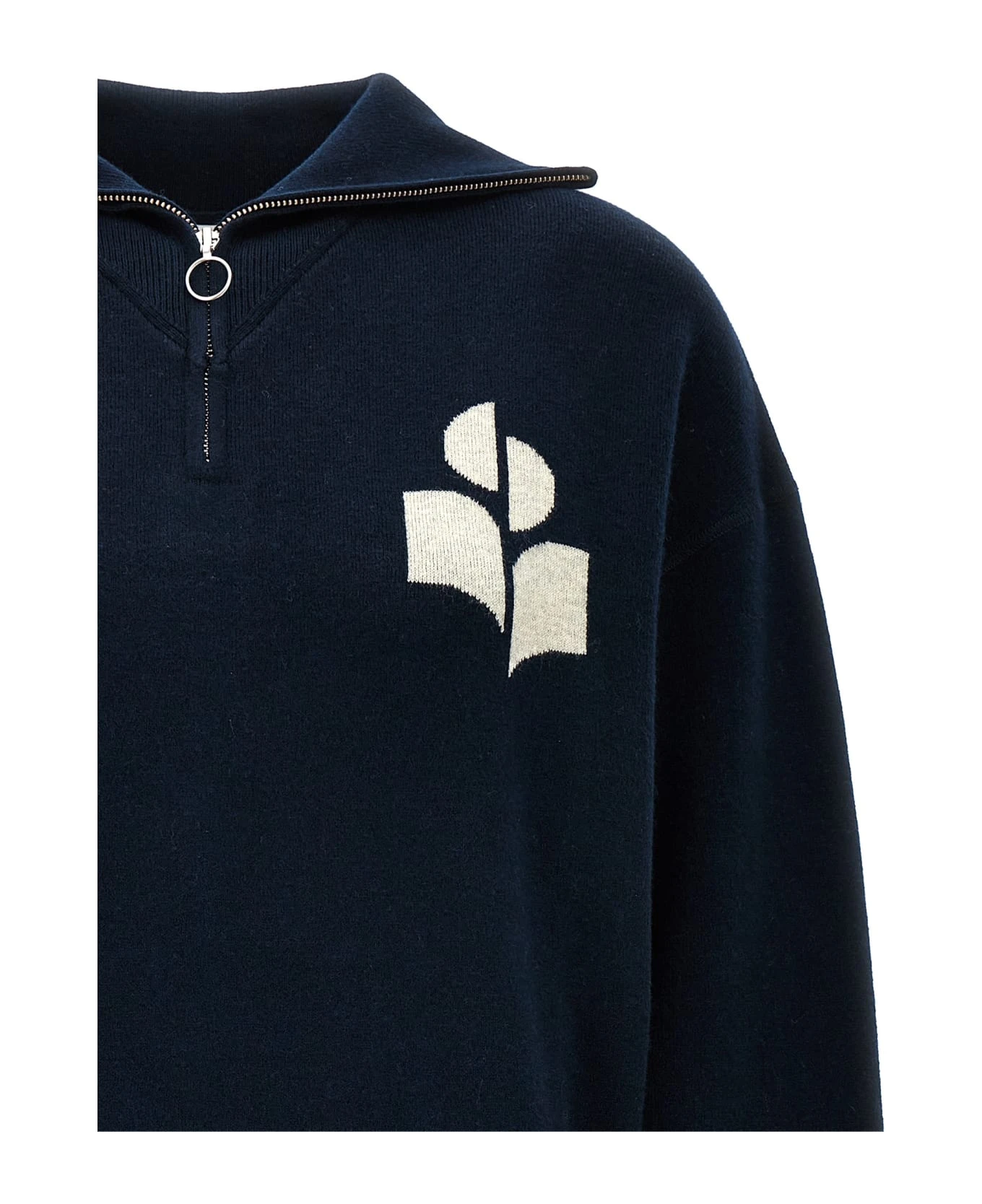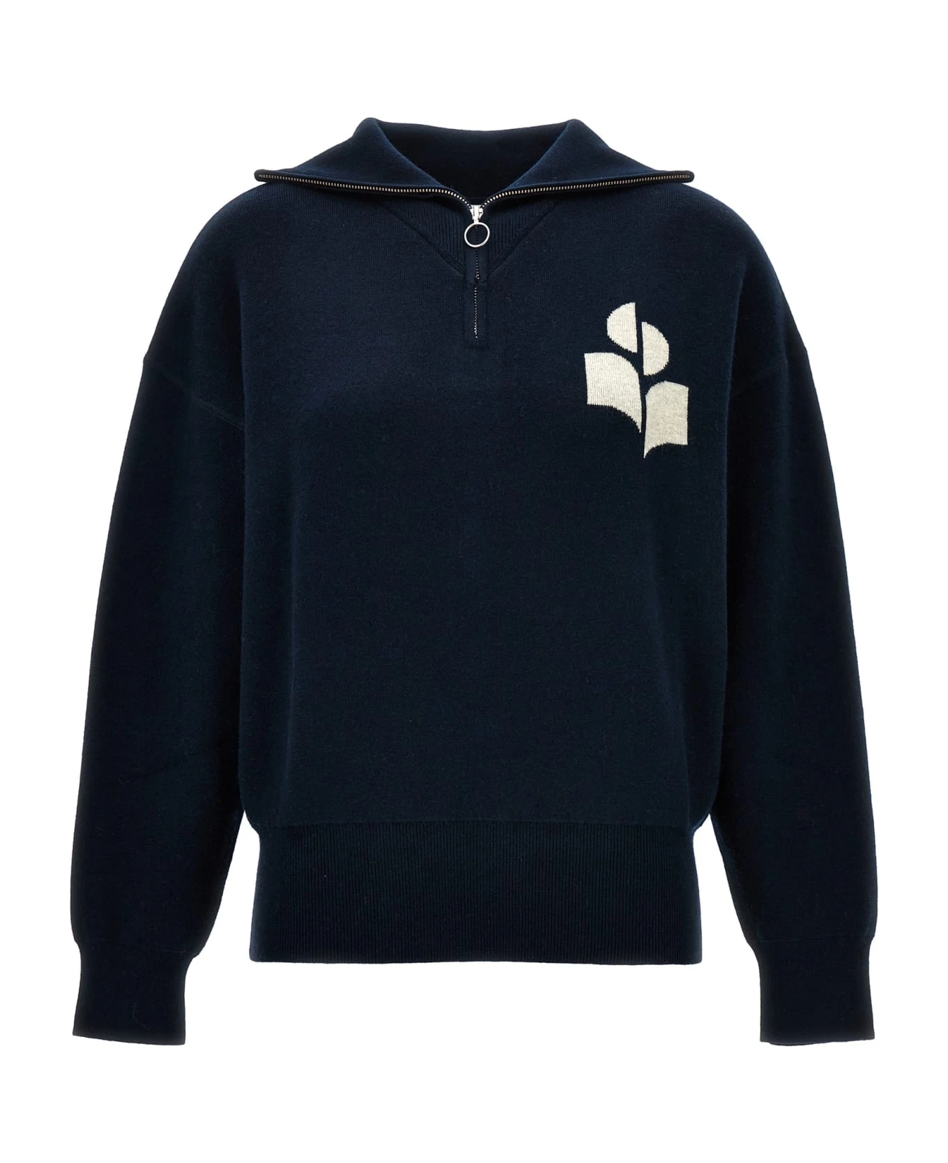 ‘Azra’ cotton blend sweater with front logo, high neck with half zip, long sleeves with cuffs.
