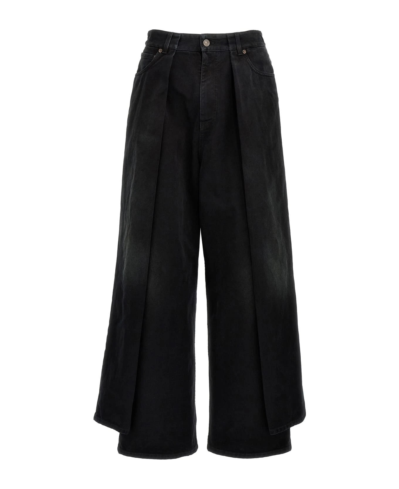 ‘Double side’ cotton denim jeans with side panel with spcco, medium waist model with zip and button closure.
