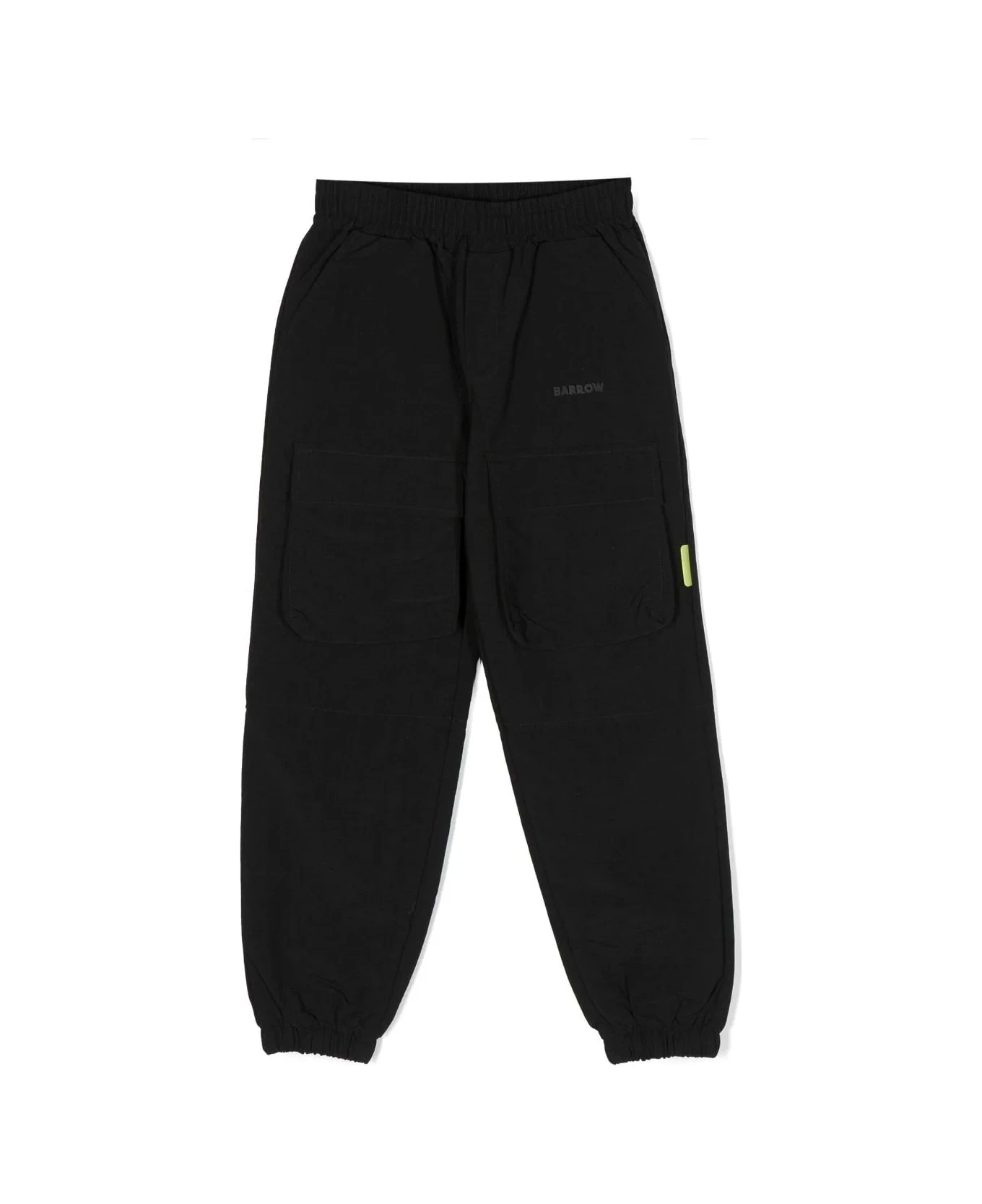 Joggers Barrow Kids made of black technical fabric with elasticated profiles, tone-in-tone logo on the front, reflective tag on the side, two front patch pockets and a flush back pocket with printed logo.