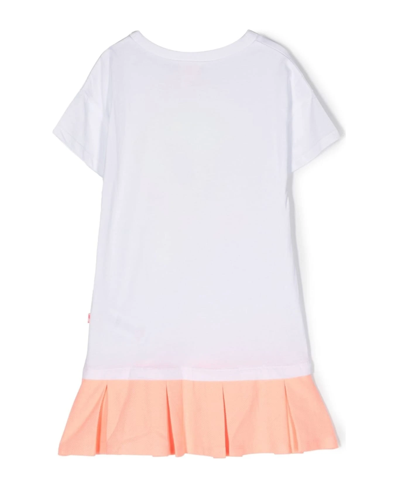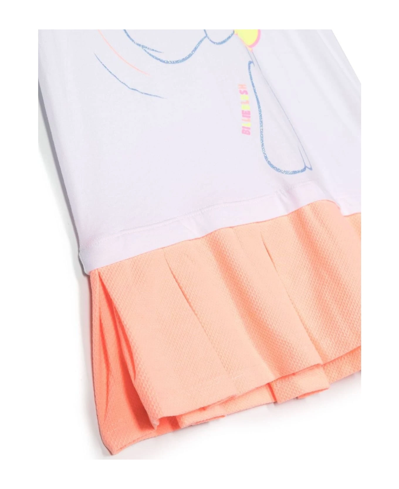 Tweety-print pleated-hem dress, white/coral, cotton, illustration-style print, glitter detailing, crew neck, short sleeves, pleated hem