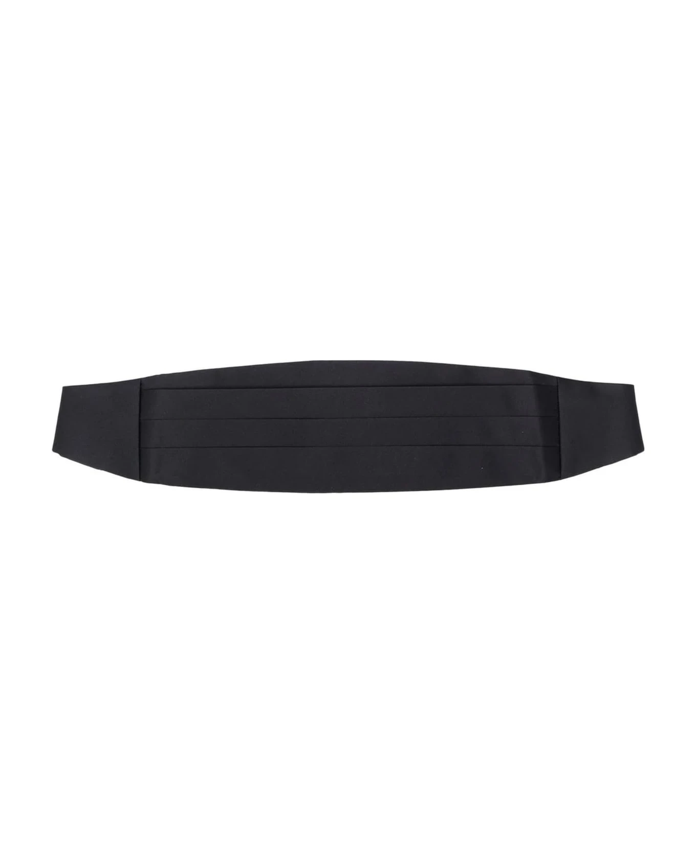 Black cummerbund, panelled design, elasticated band, wraparound style, clasp fastening