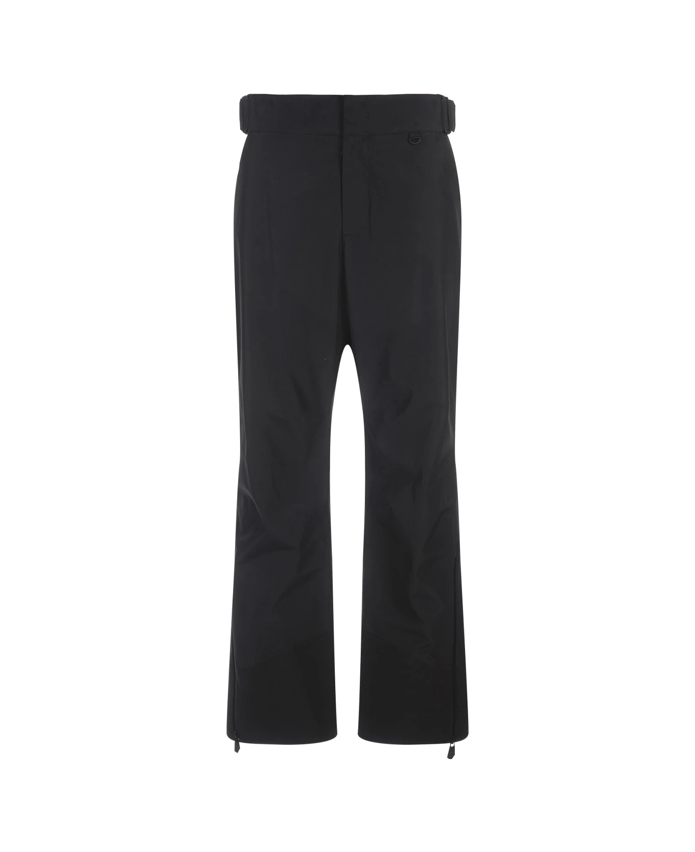 Moncler Grenoble ski trousers made of black padded nylon. They feature a zip, hook and button fastening, an adjustable Velcro waist, two zipped side pockets, a zipped pocket on the back and zipped ankles. Regular fit.