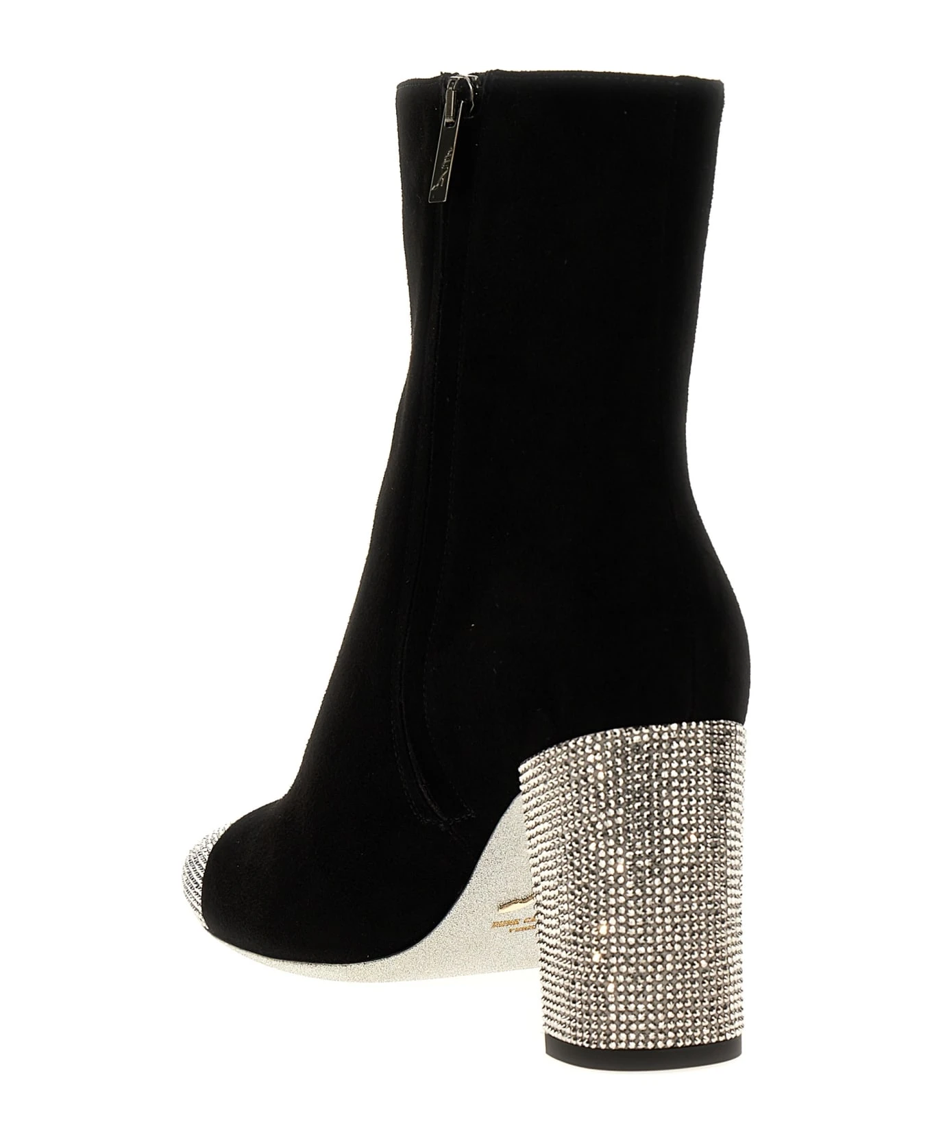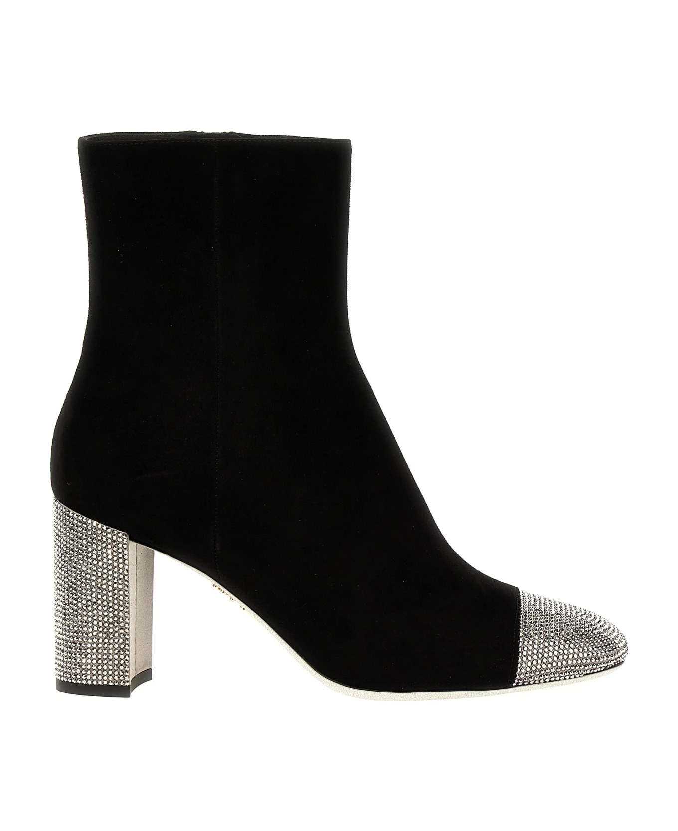 ‘Bonnie’ suede ankle boots with rhinestones on the toe and heel and a side zip closure.