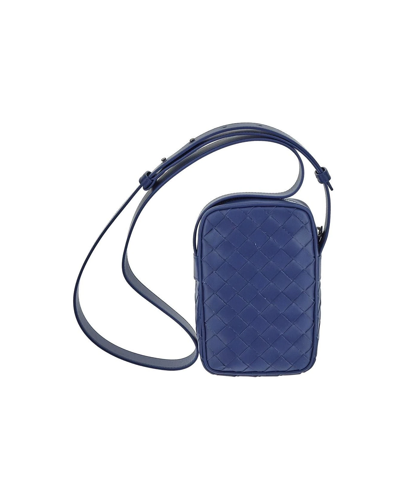 Bottega Veneta smartphone case in cruise leather with Intreccio design. The item is featured an adjustable shoulder strap, zip fastening and silver-tone hardware.
