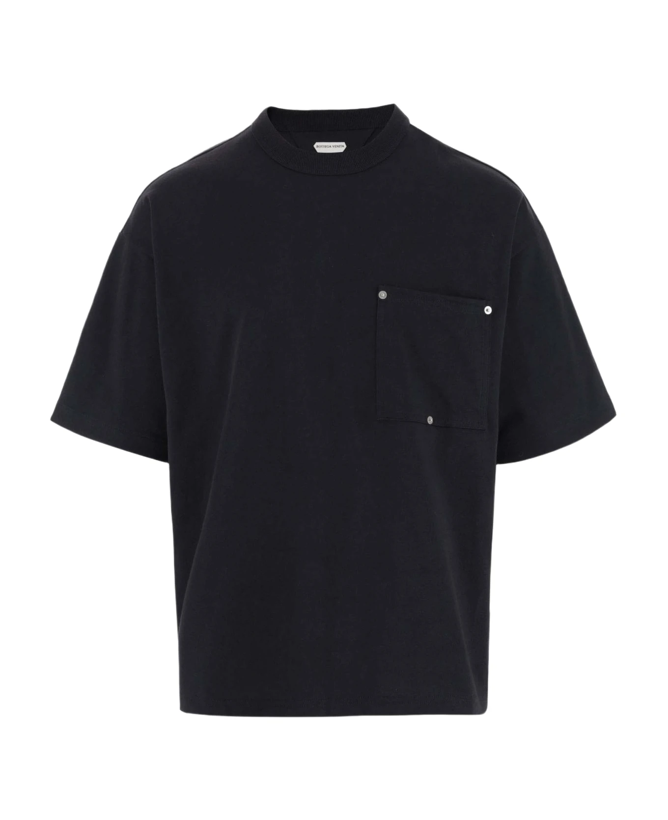 Heavy jersey t-shirt “Bottega Veneta” embroidery on the inside of the sleeve Short sleeves Soft fit Navy Made in Italy Composition: 100% cotton