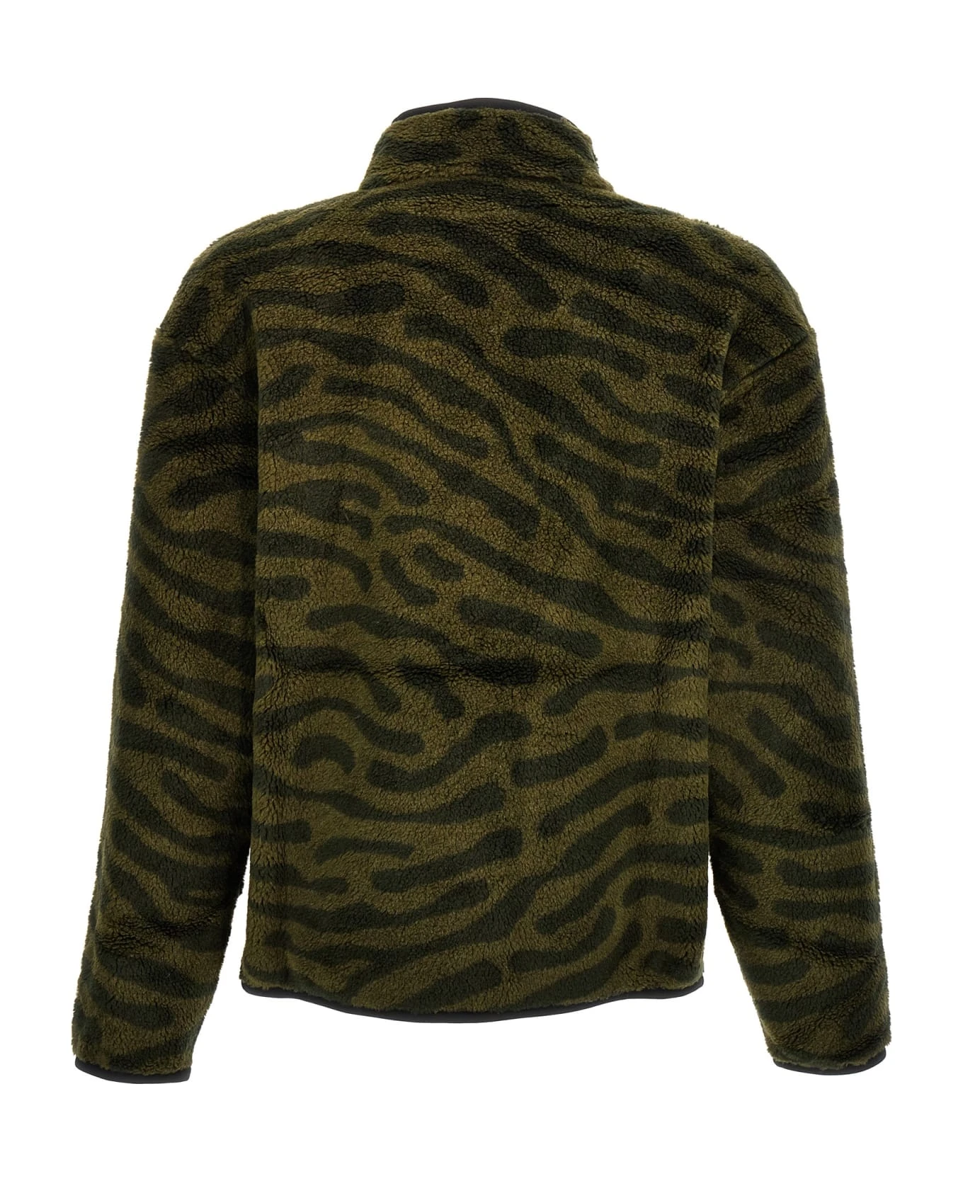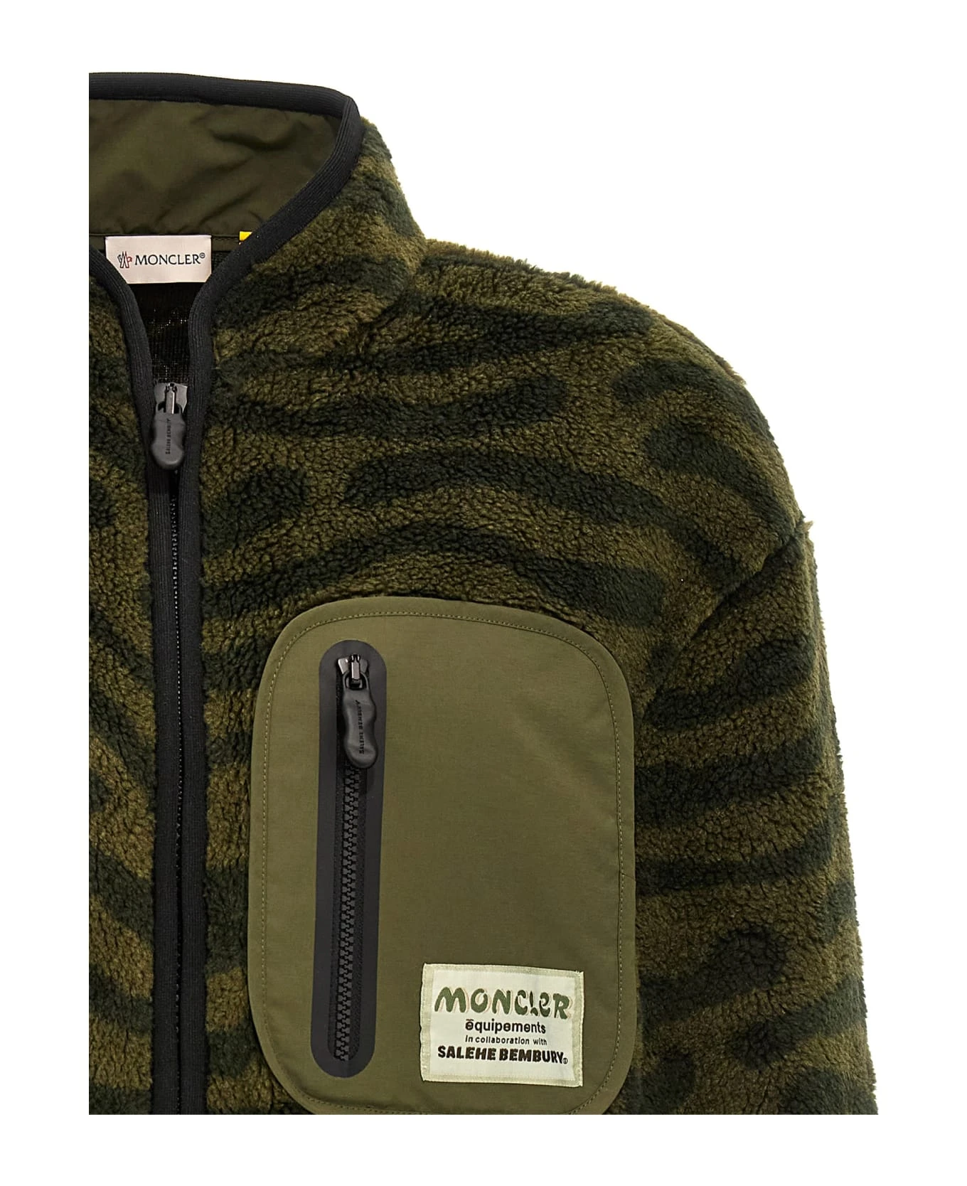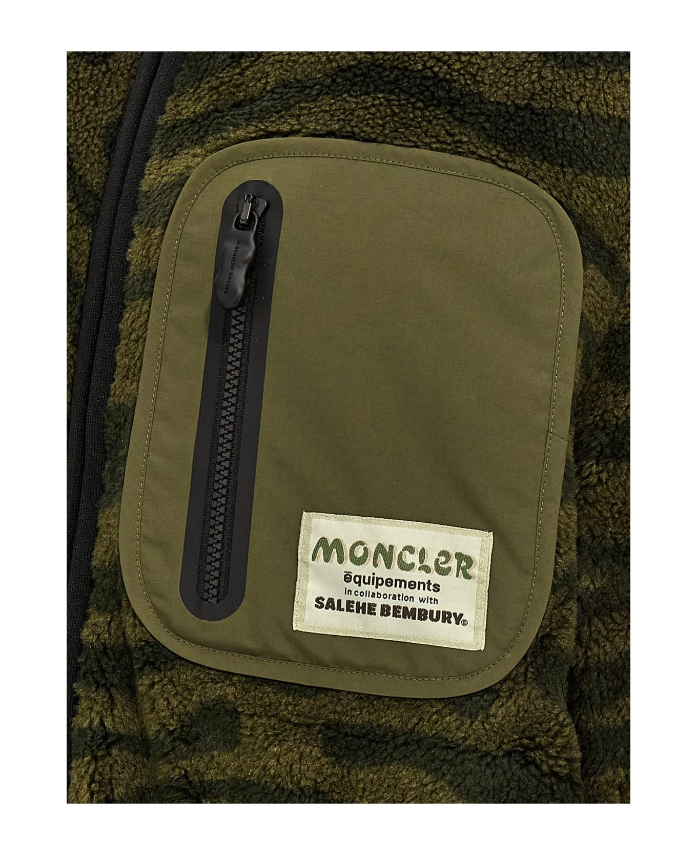 Moncler Genius x Salehe Bembury fleece cardigan with camouflage print, zip closure.