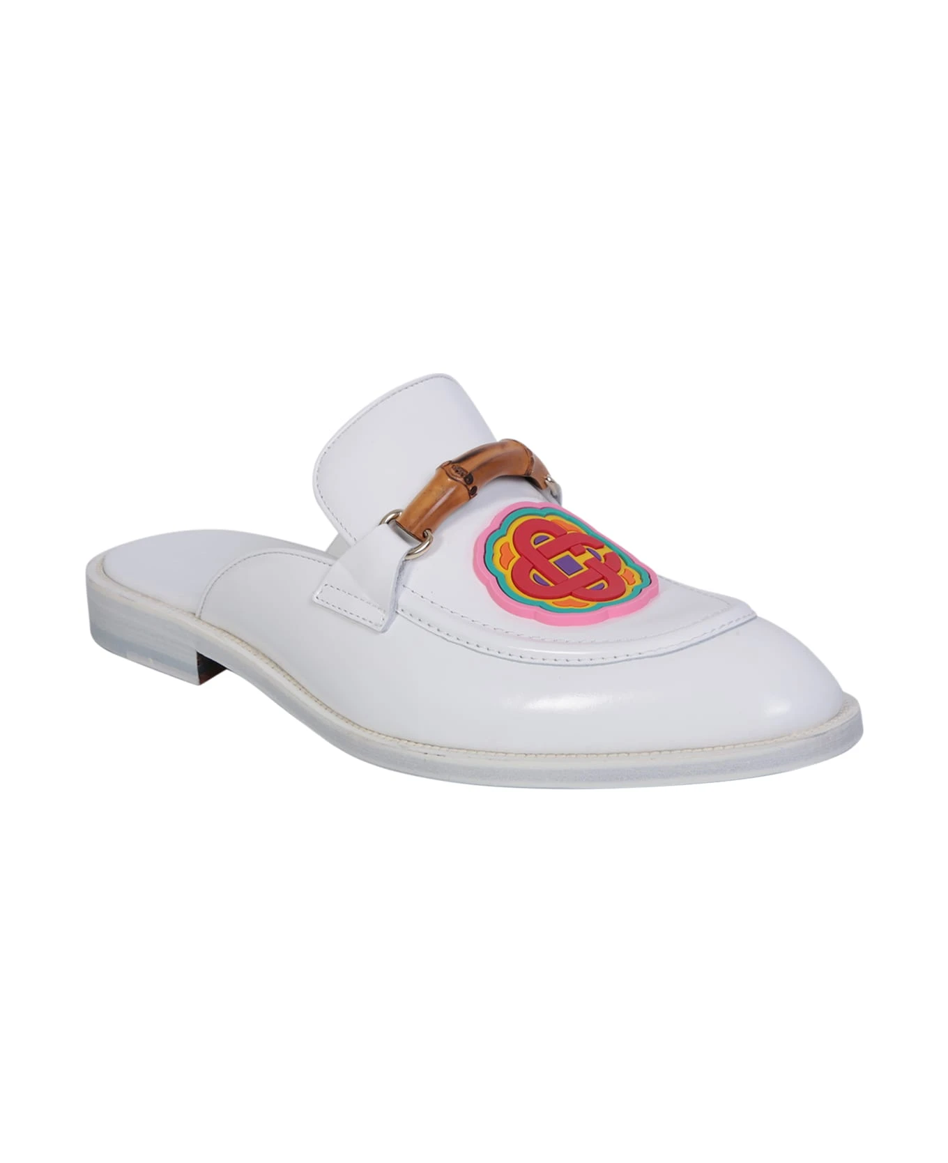 Almond toe. Slip-on style. Rainbow Monogram print multicolor. Bamboo detailing. Branded insole. Leather sole. Color: white/ multicolor