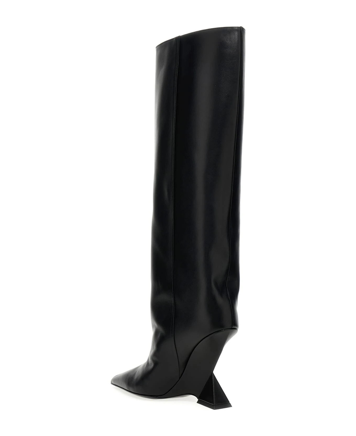 Cheope’ leather boots with pointed toe and sculpted heel.