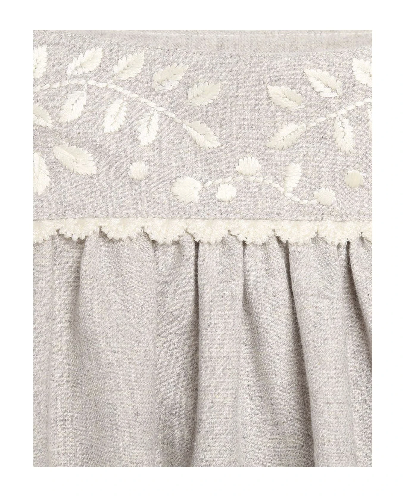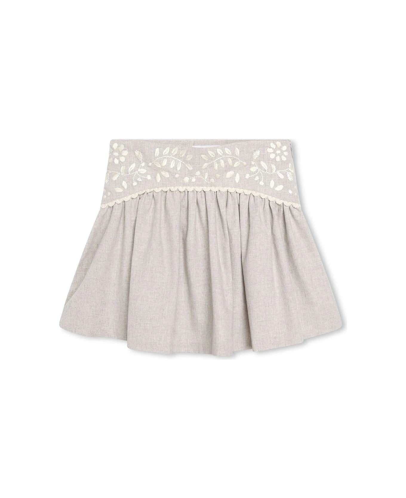Chloé Kids skirt made from grey cotton and embellished at the waist with contrasting floral embroidery. Flared model with side zip fastening. Above-the-knee length.