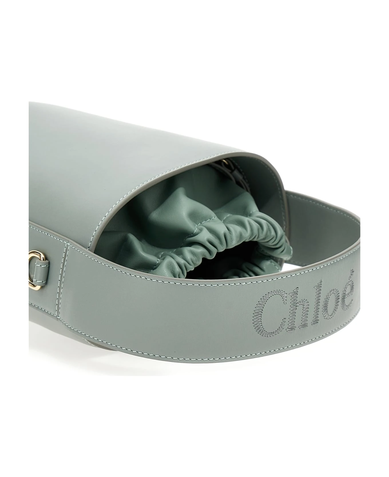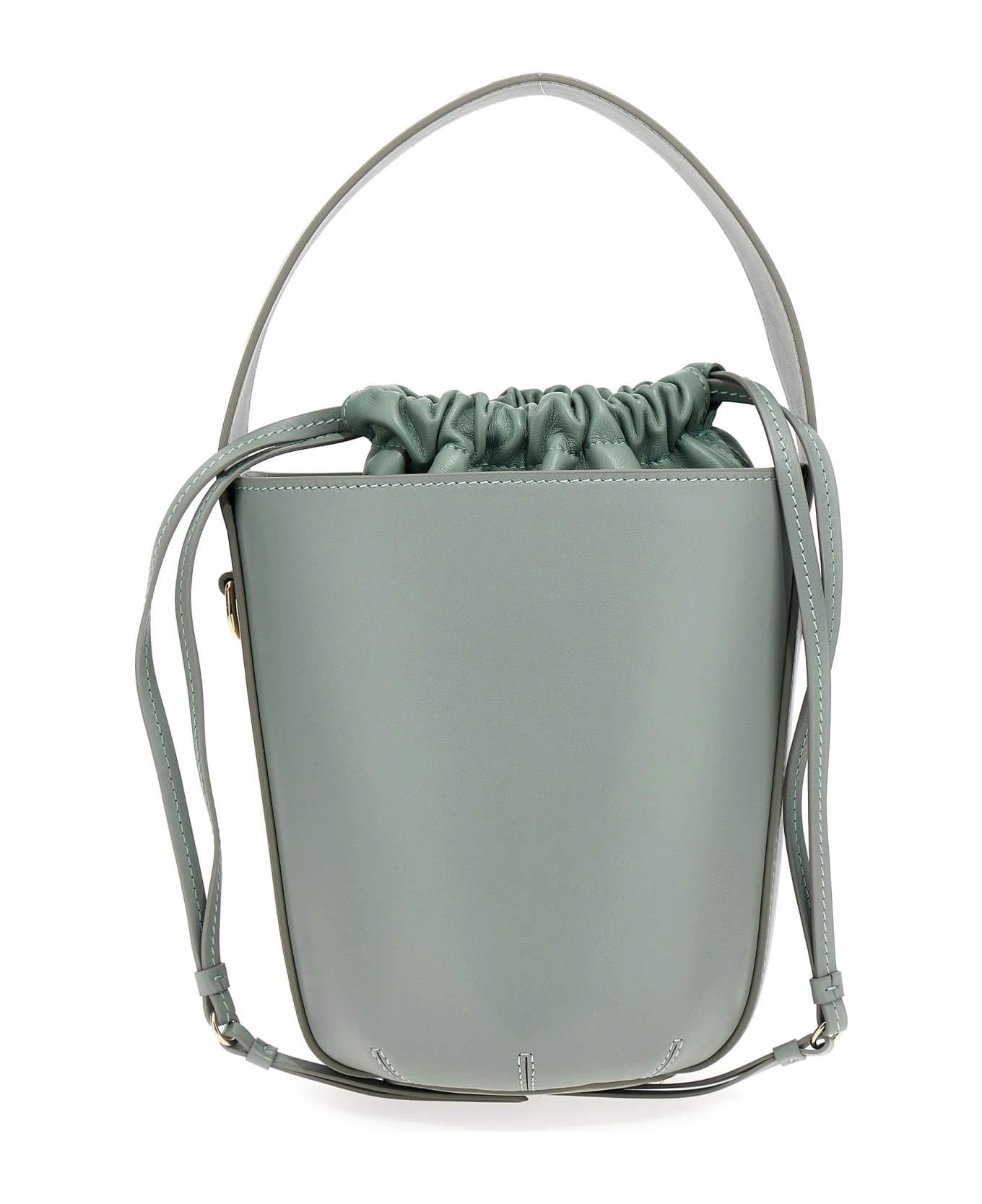 Chloé Sense’ leather bucket bag with top handle with logo embroidery, with adjustable and removable shoulder strap and a drawstring closure.