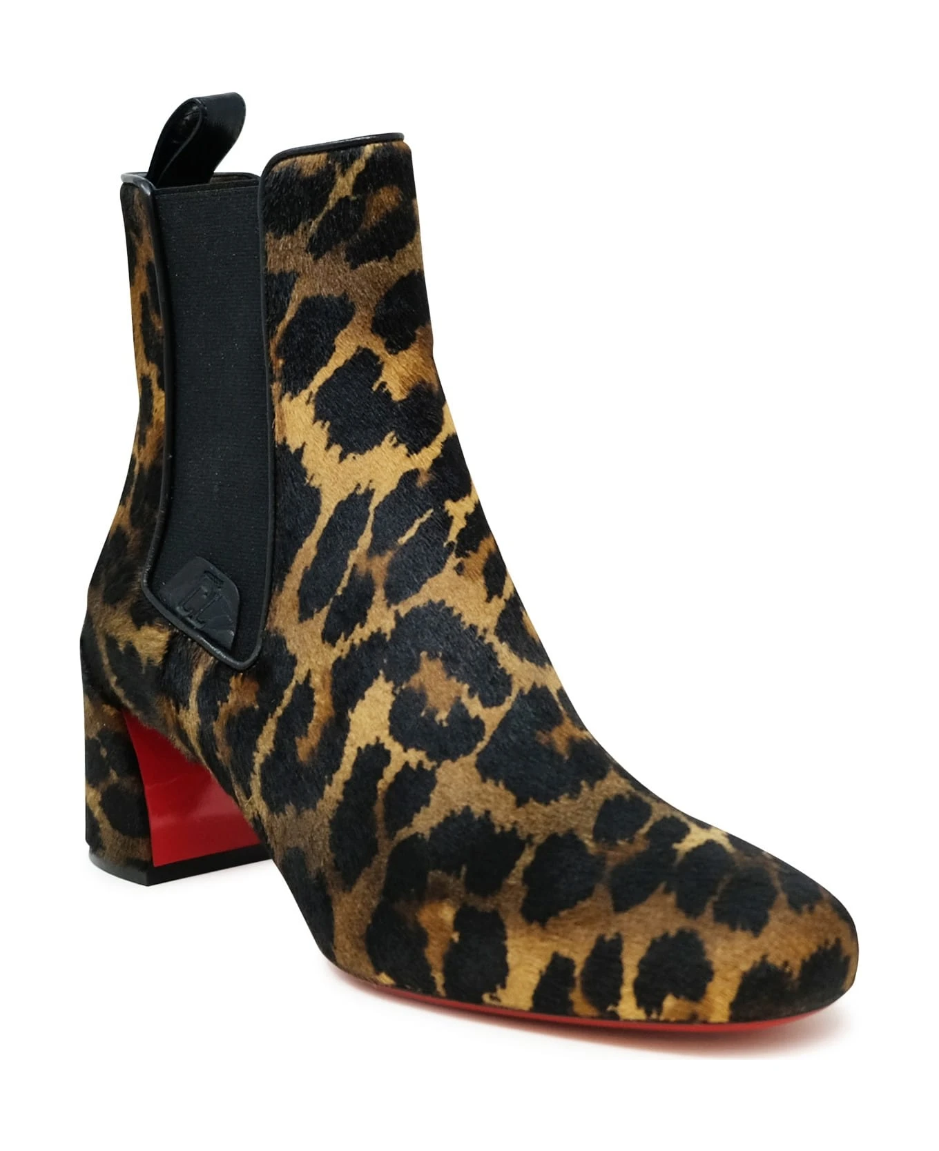 CHRISTIAN LOUBOUTIN 3230761 BW6D LEOPARD PRINT PONY TURELASTIC 55 ANKLE BOOTS, product code 3230761 BW6D, style name TURELASTIC 55, color LEOPARD PRINT, heel 55 MM, season CARRY OVER