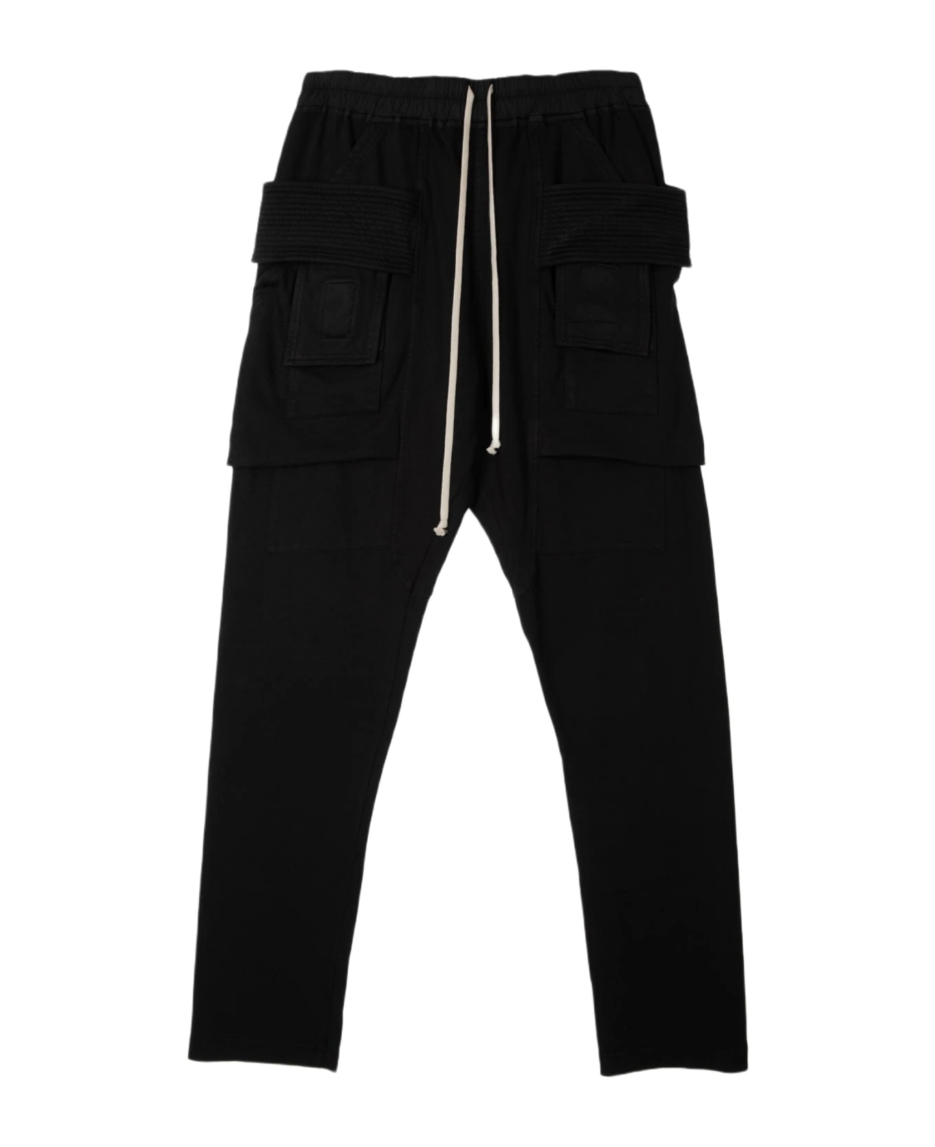 Black cotton cargo sweatpant. Elastic waistband with drawstring. Two large leg pockets with band detail. Two side pockets and two on the back. Slim fit. Composition: 100% cotton. Made in Italy.