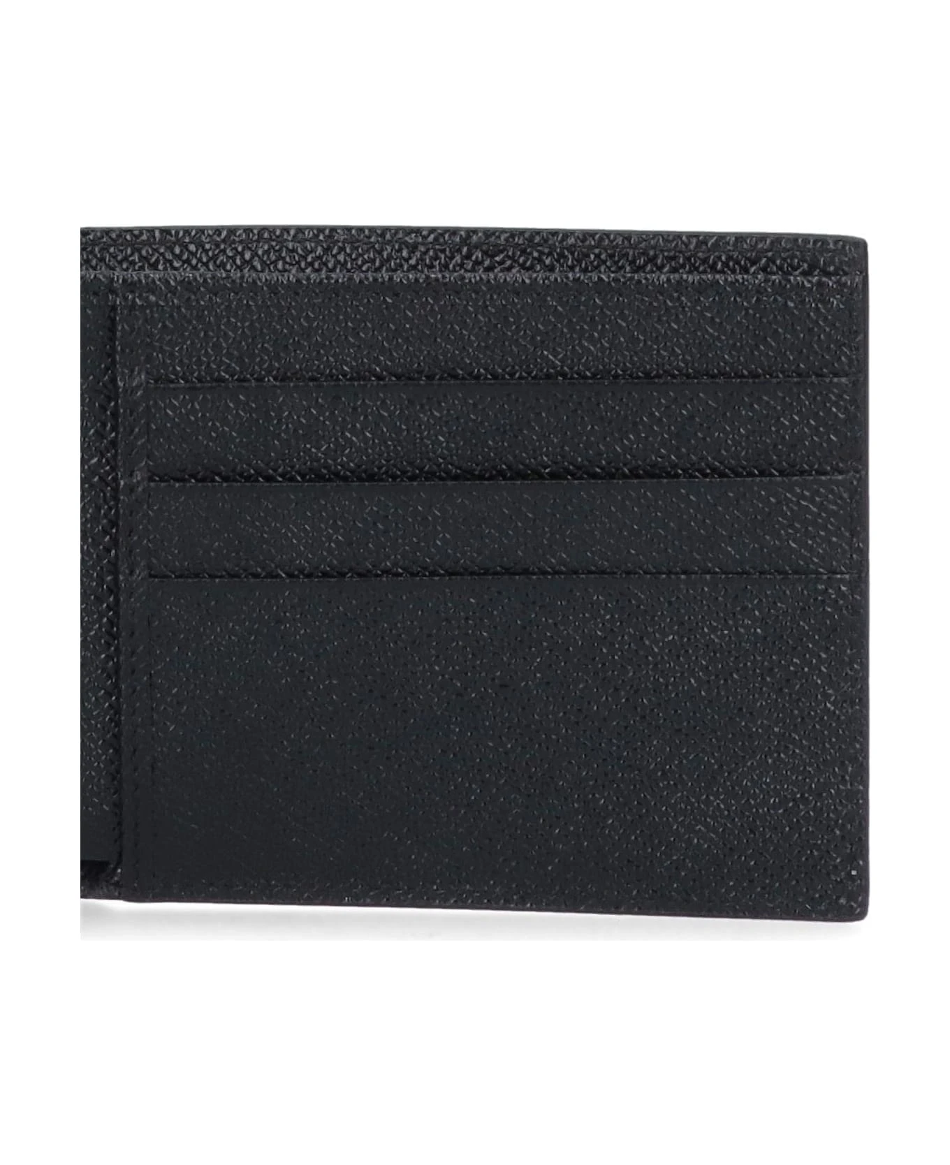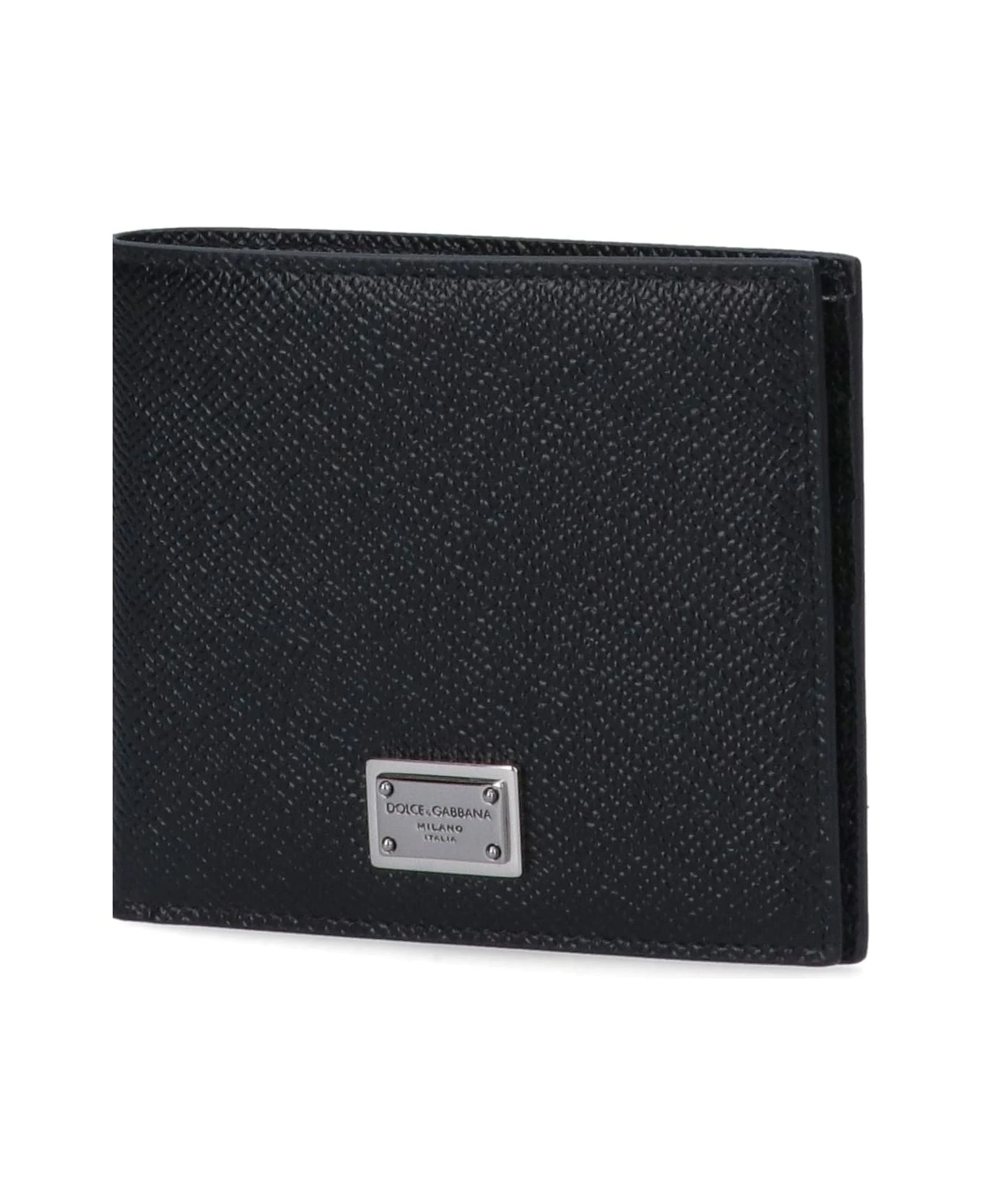Dolce & Gabbana Bi-Fold Wallet ‘Dauphine’, black leather, silver logo plaque front, six interior crate slots, two interior flat pockets, one interior bill compartment.