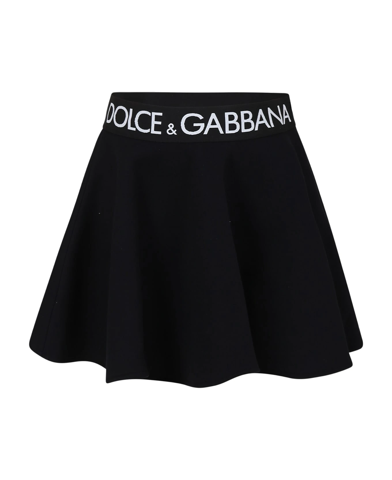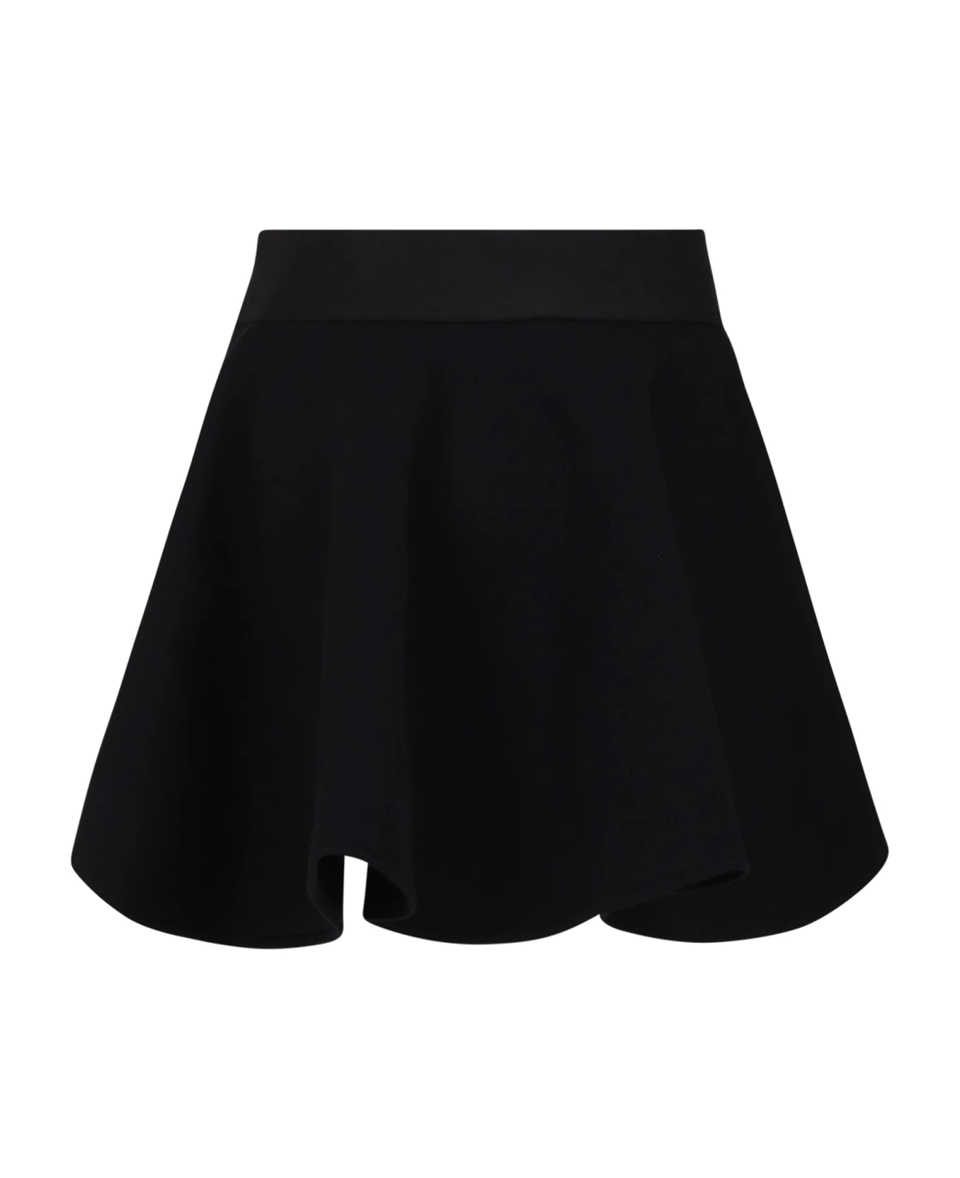 Black circle skirt in neoprene, with side zip closure and logoed elastic waistband.