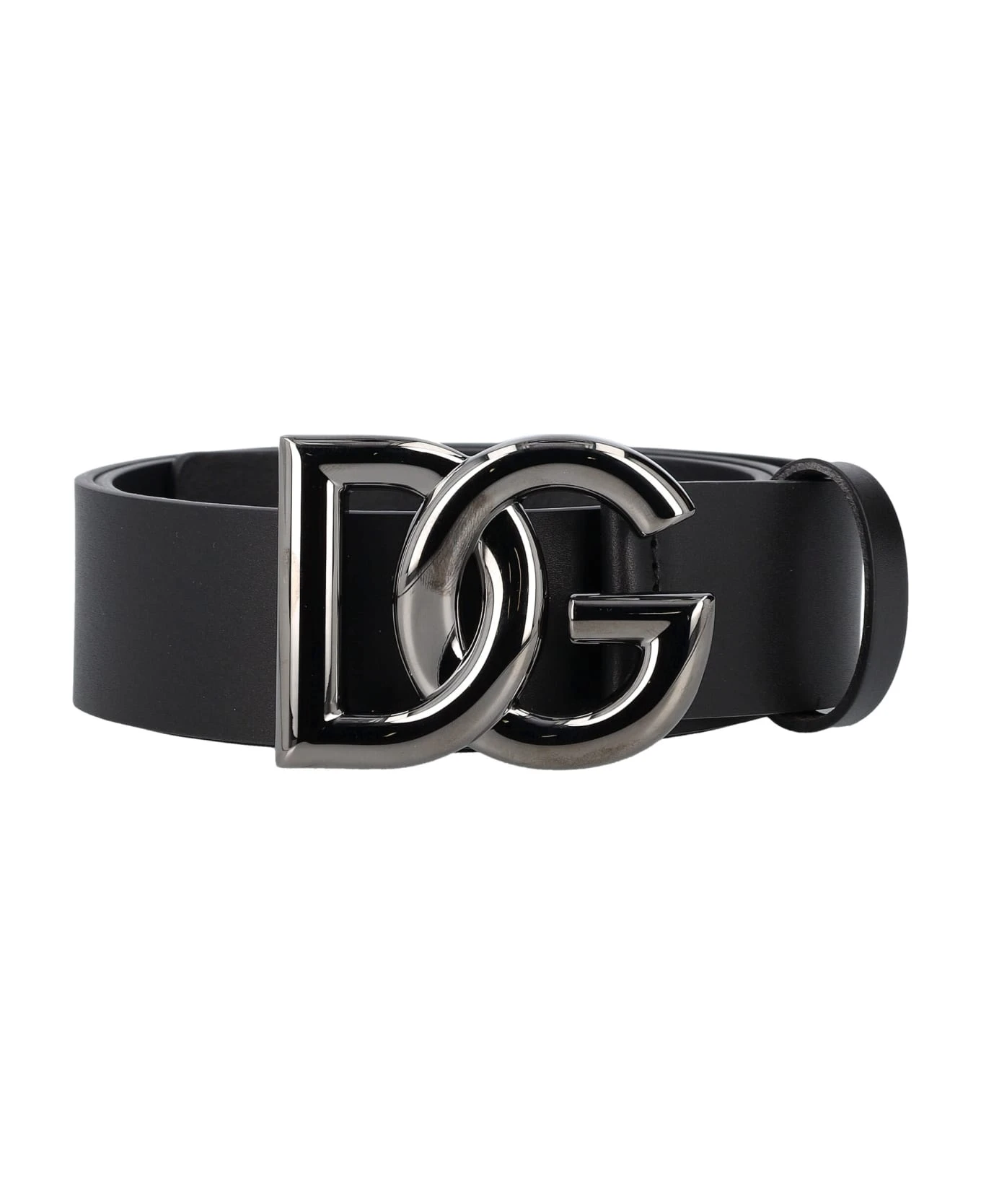 Lux Leather Belt With Crossover Dg Logo Buckle By Dolce & Gabbana. Featuring: