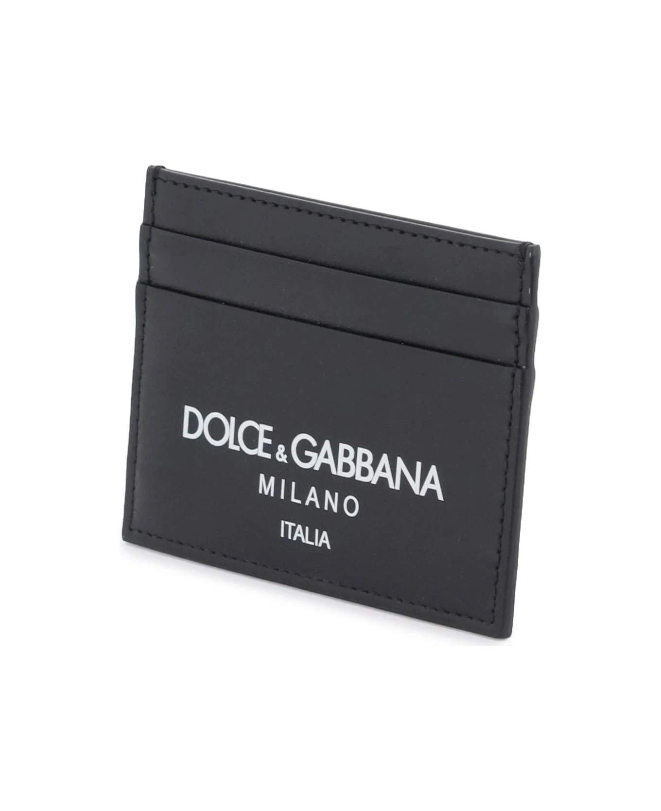Dolce & Gabbana cardholder crafted in smooth leather featuring contrasting lettering logo print, top slit pocket and four card slots.