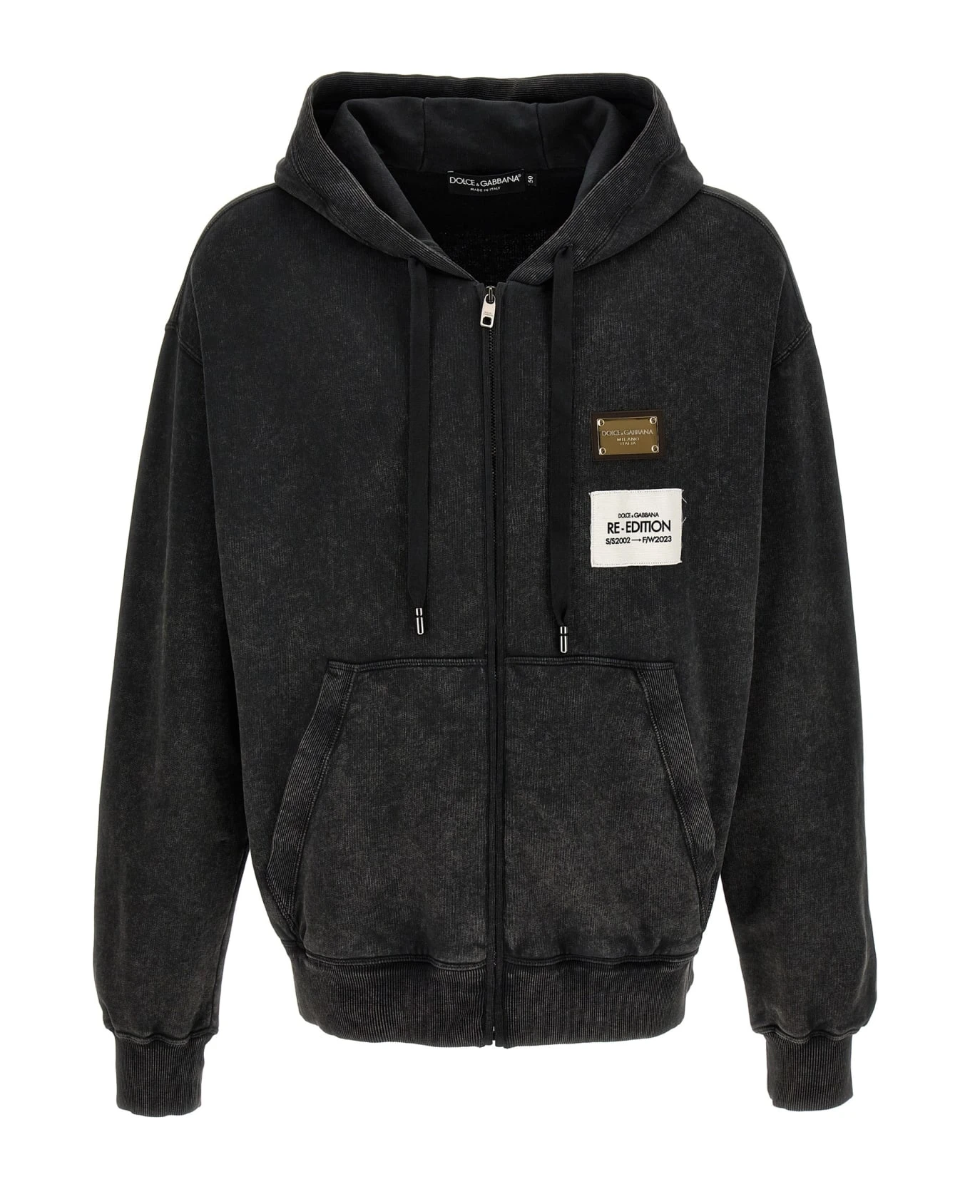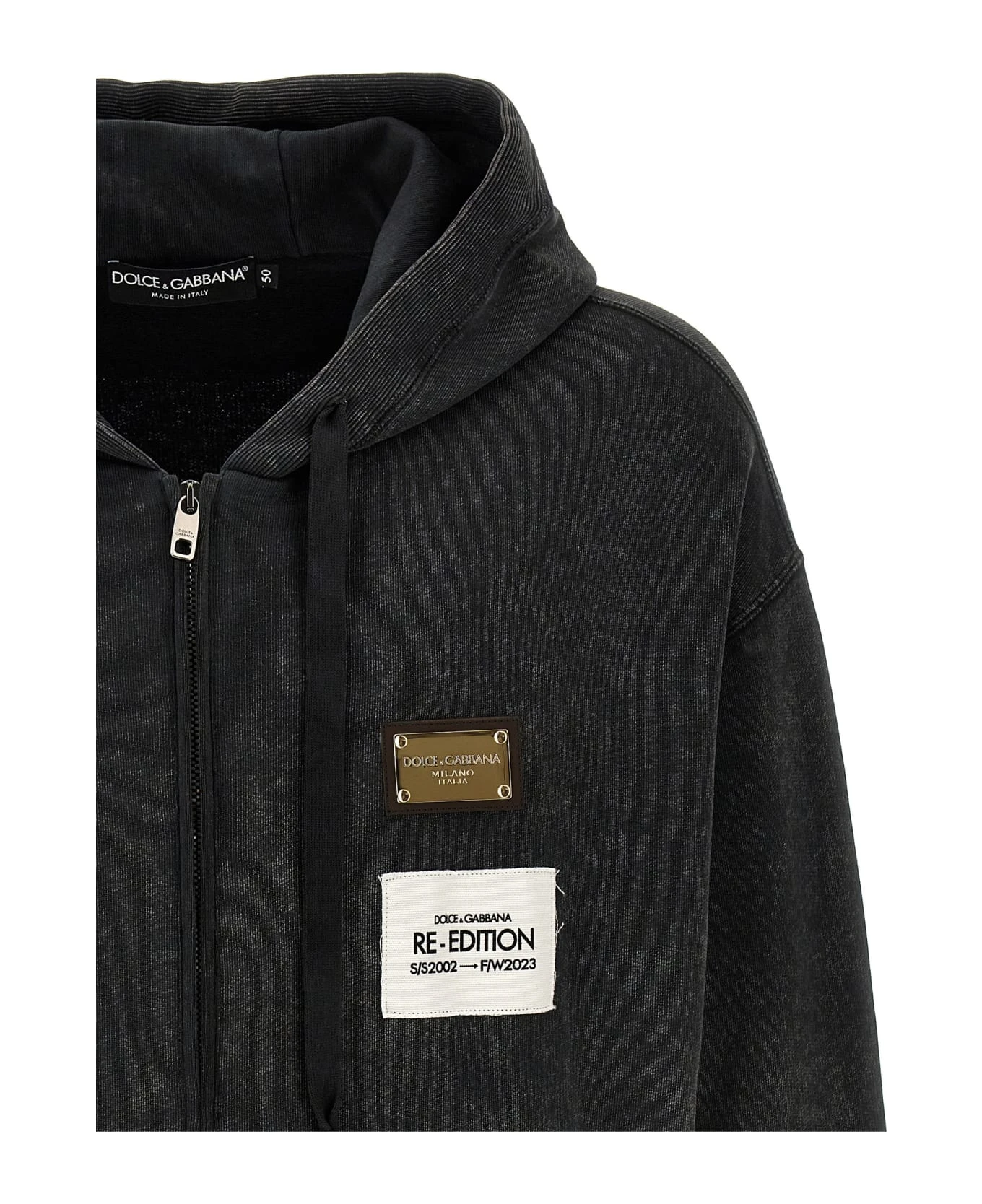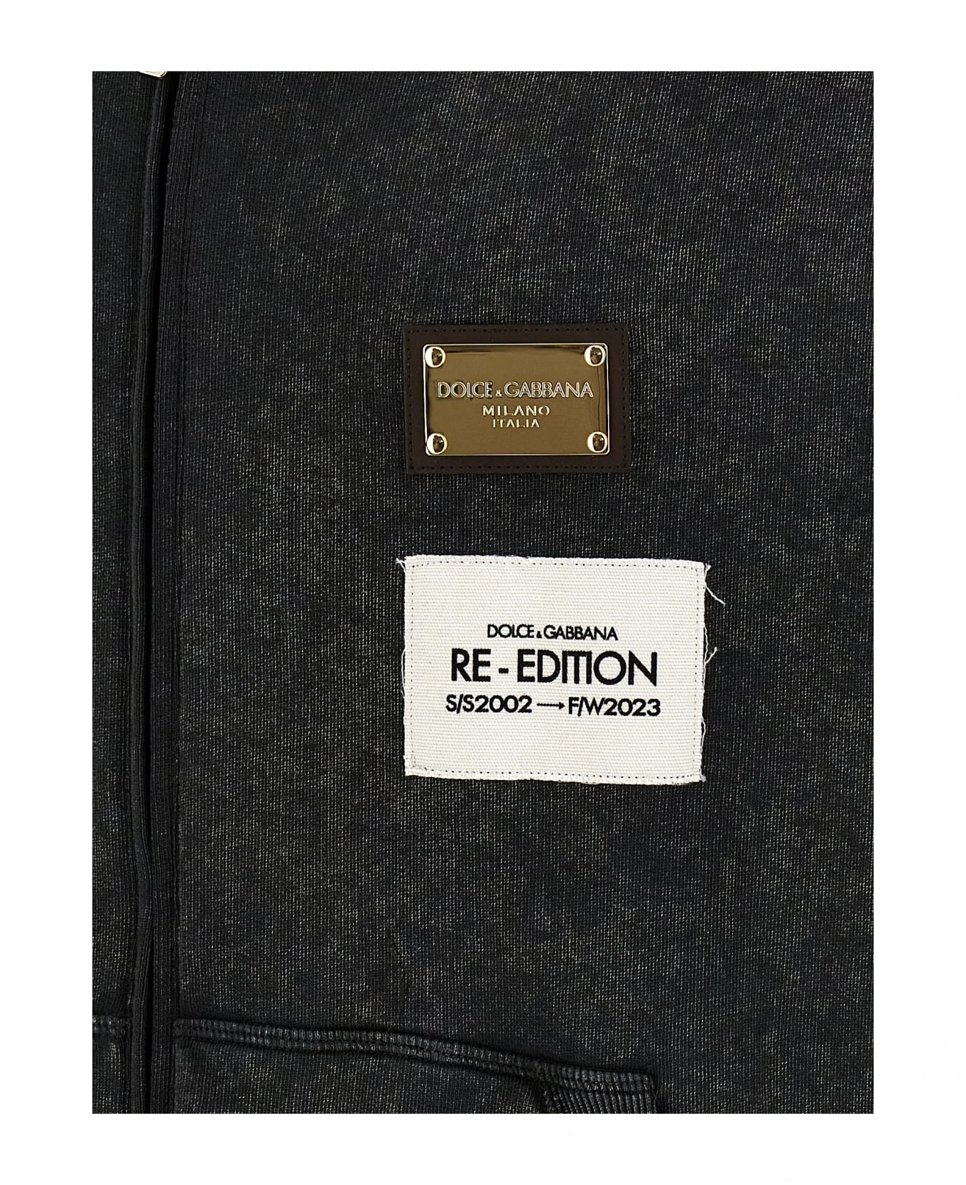 ‘Re-Edition SS 2002 – FW 2023’ cotton hoodie with zip closure, front pockets, plaque and logo patch, long cuffed sleeves.
