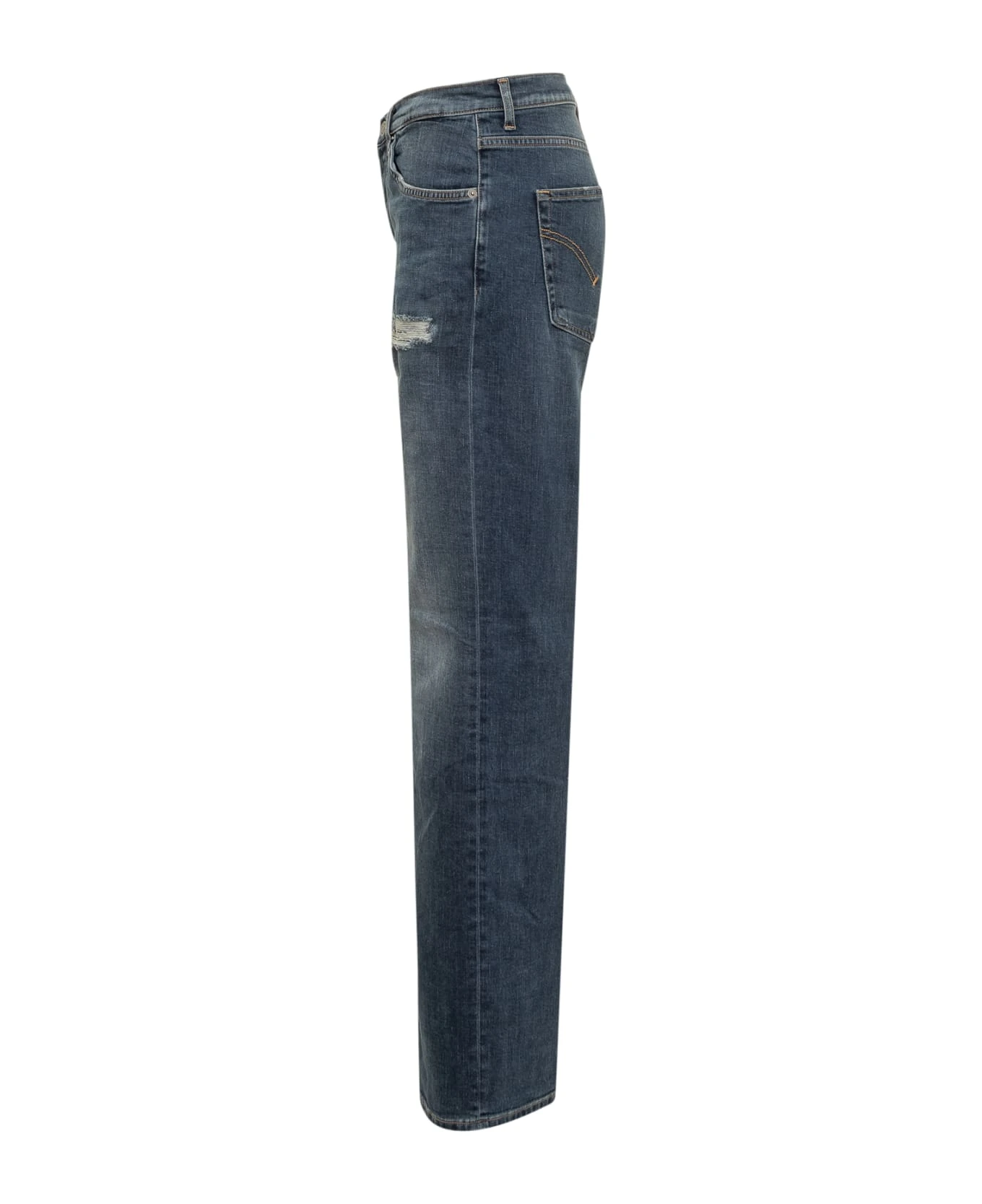 Long jeans Button closure. Loose fit. High waist. Wide leg. Front rips. Belt loops.