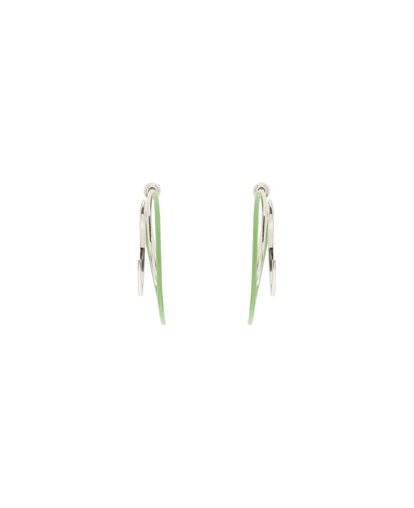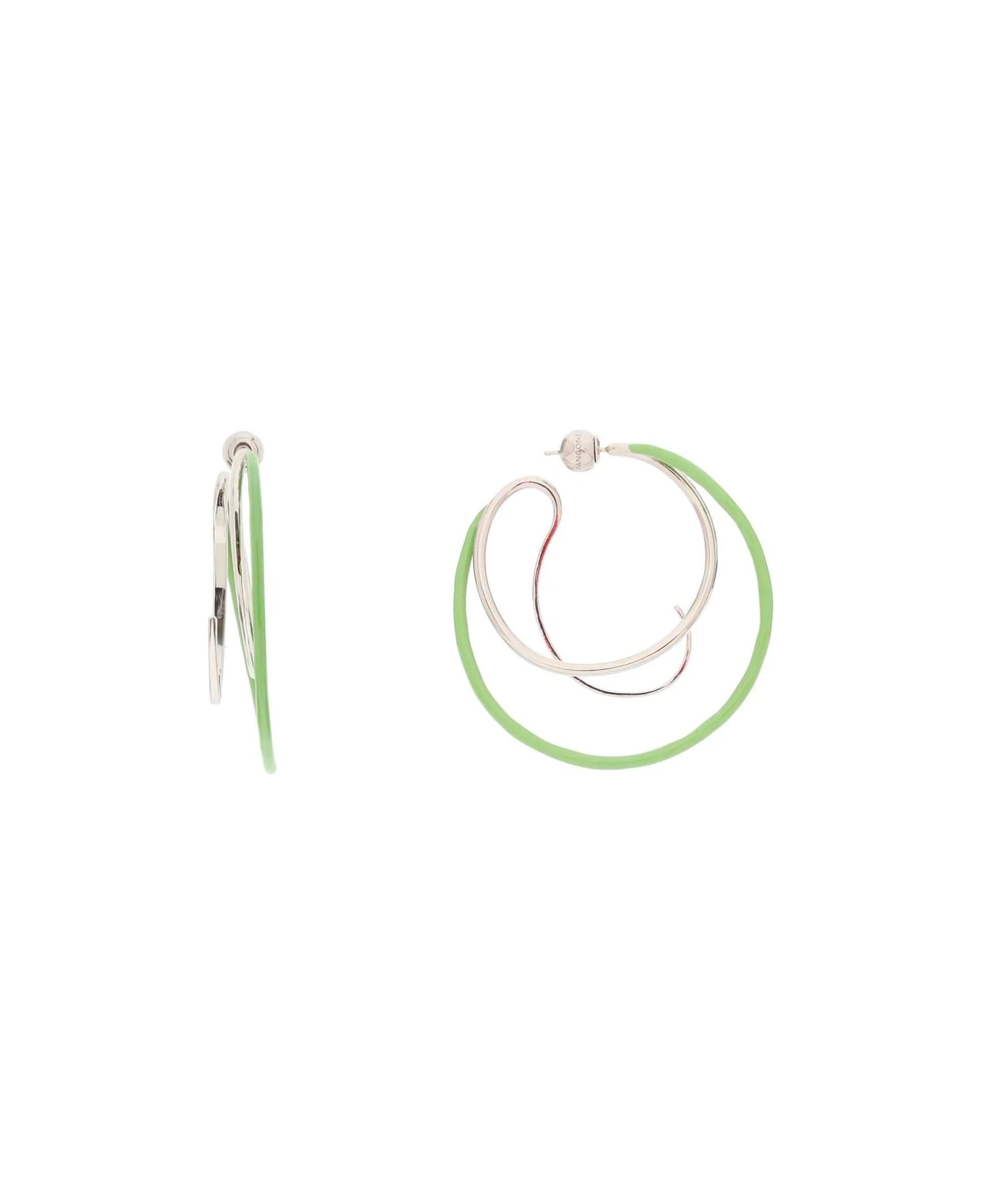 “Double Kilter” spiral earrings by PANCONESI made of enamelled brass. Push back clasp.