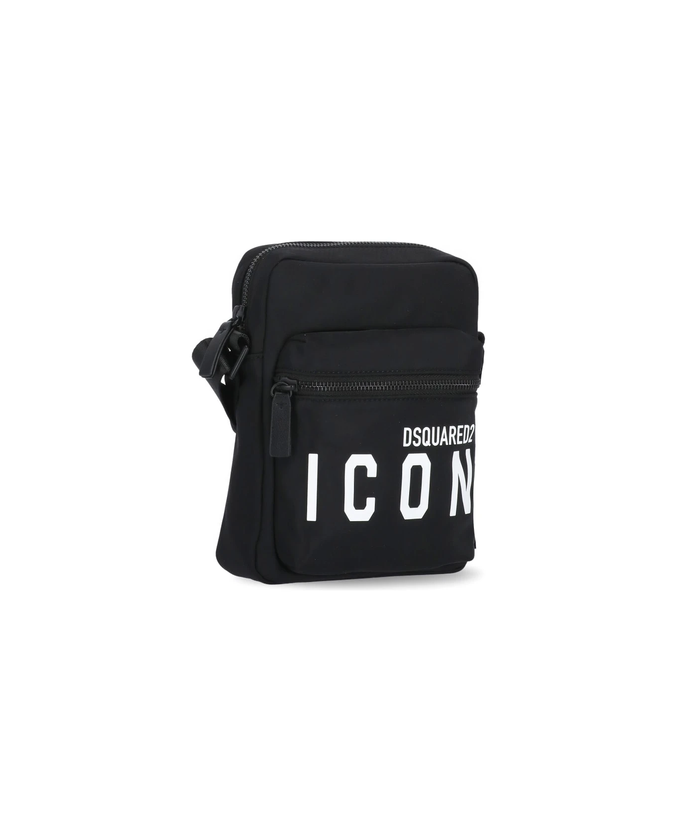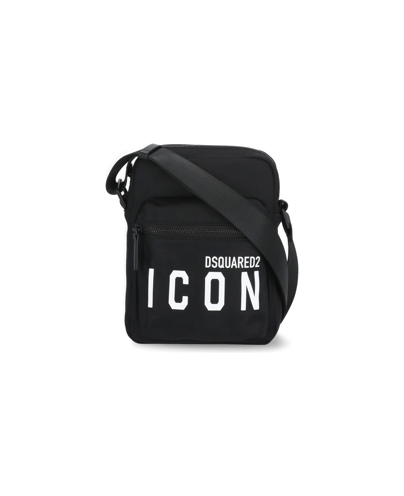 Be Icon Shoulder Bag from Dsquared2: – Black Dsquared2 tech fabric shoulder bag for man
