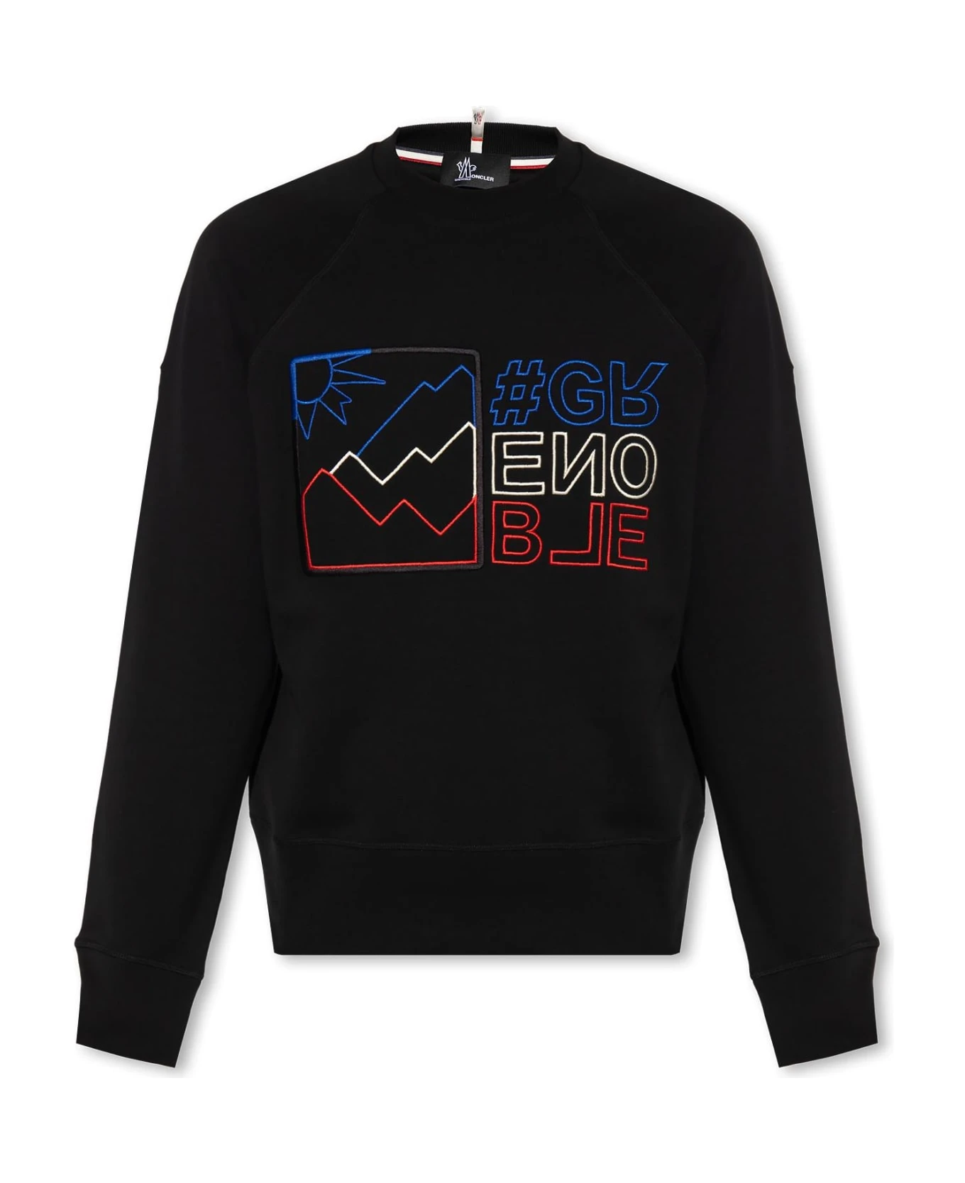 Black ‘Maglia’ creweneck sweatshirt from Moncler Grenoble. Made of cotton, this long sleeve design features ribbed trims.