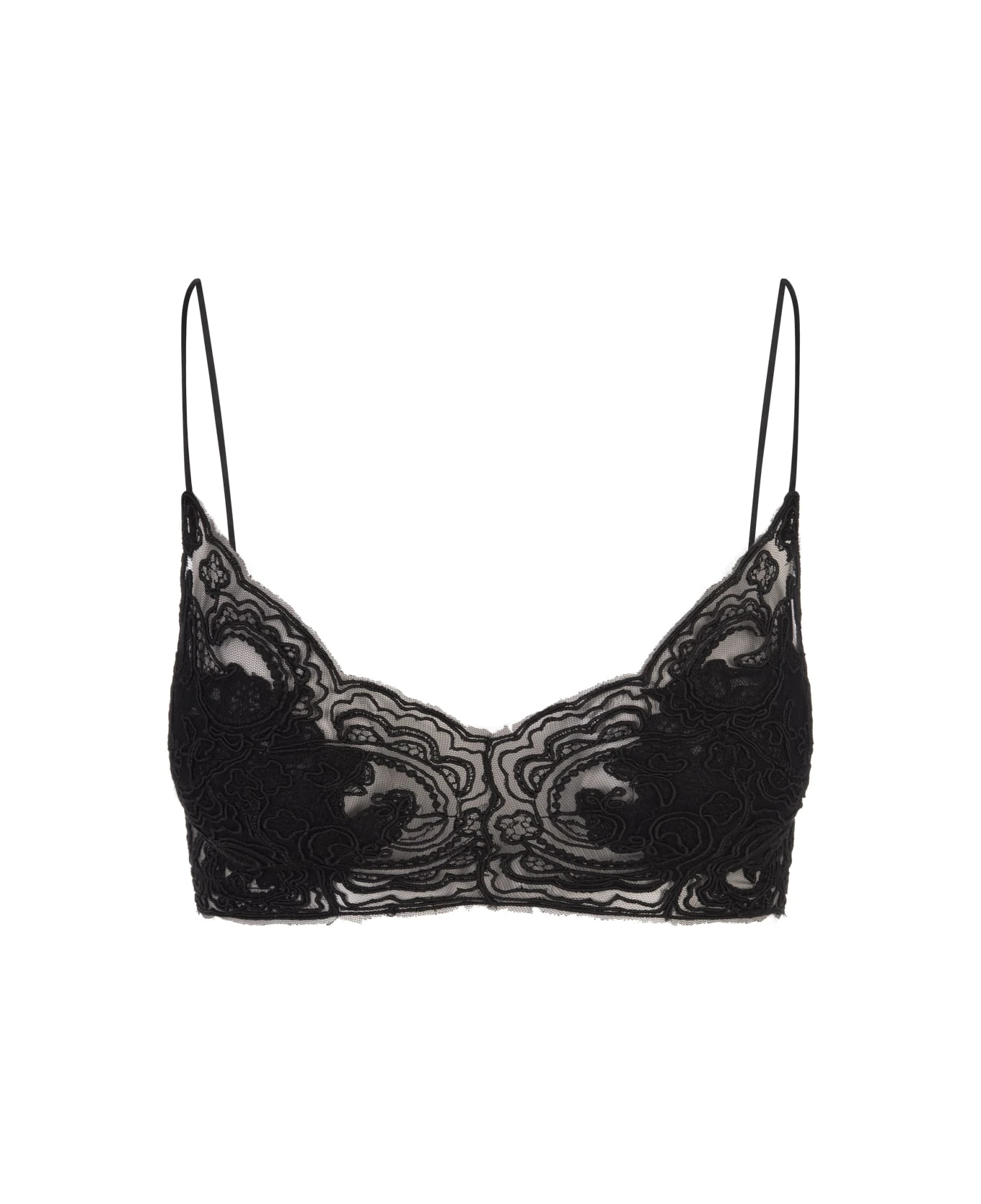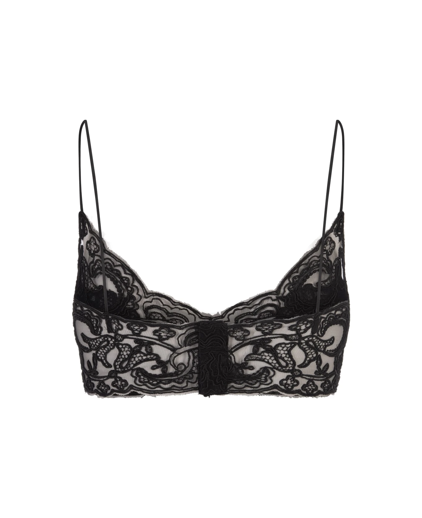 Ermanno Scervino short top made entirely of delicate black tulle with tonal embroidery. The lingerie-style brassiere features thin silk satin straps, a deep V-neckline and a back hook-and-eye closure. The fit of this garment is regular, we recommend buying your usual size.