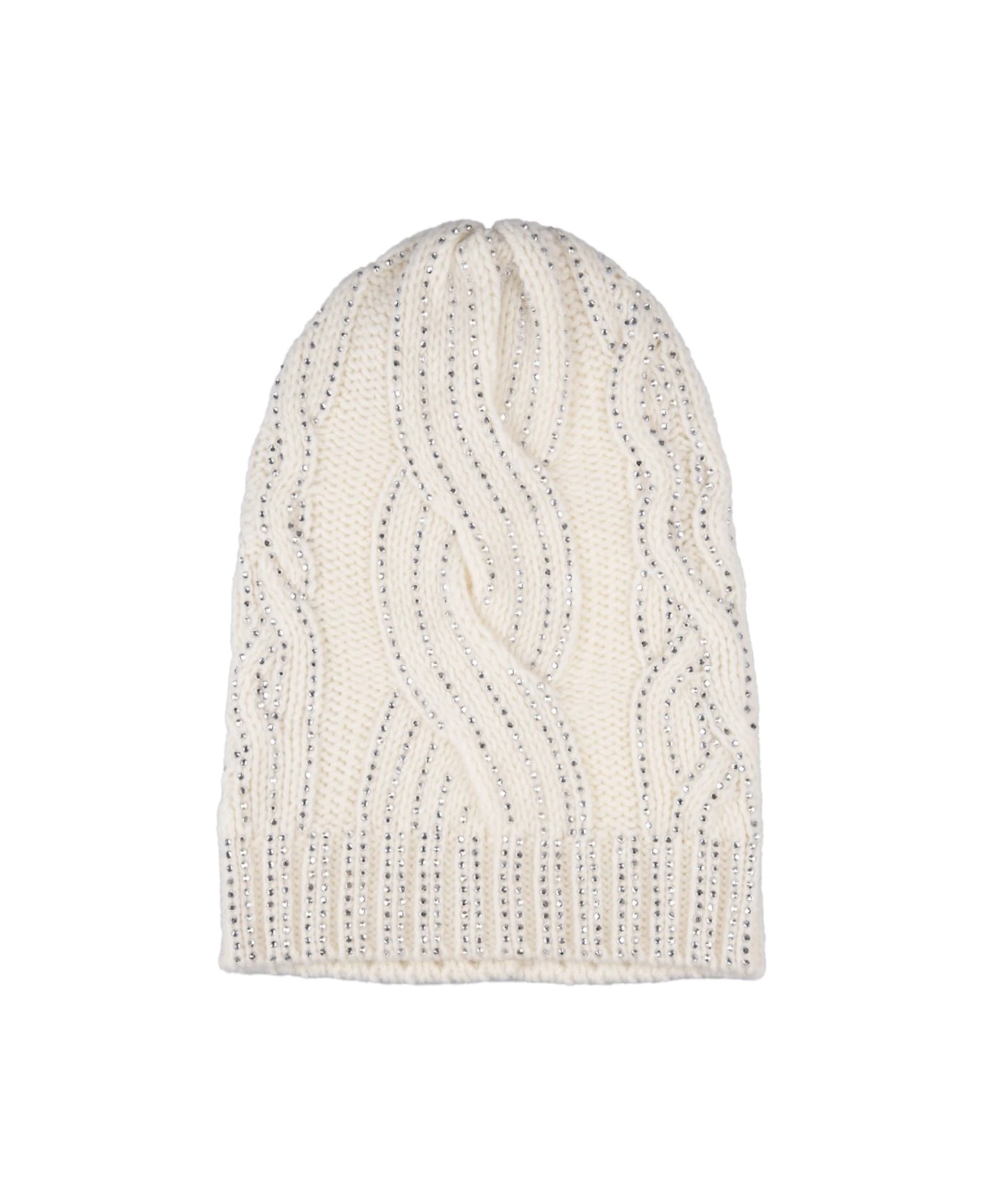 Oversized beanie by Ermanno Scervino made of white braided wool and embellished with all-over crystal applications.