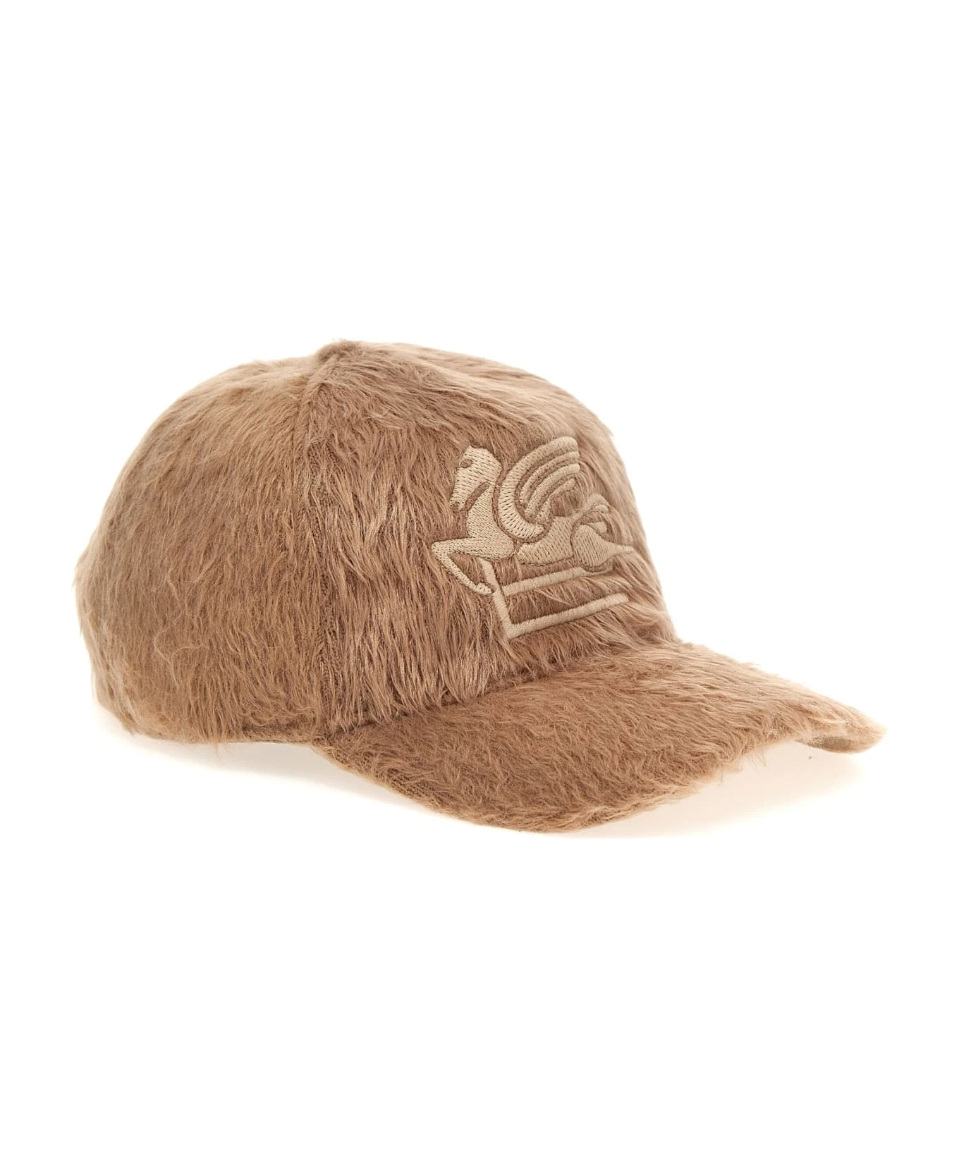 Cap in fur-effect fabric with front embroidered logo, adjustable strap.